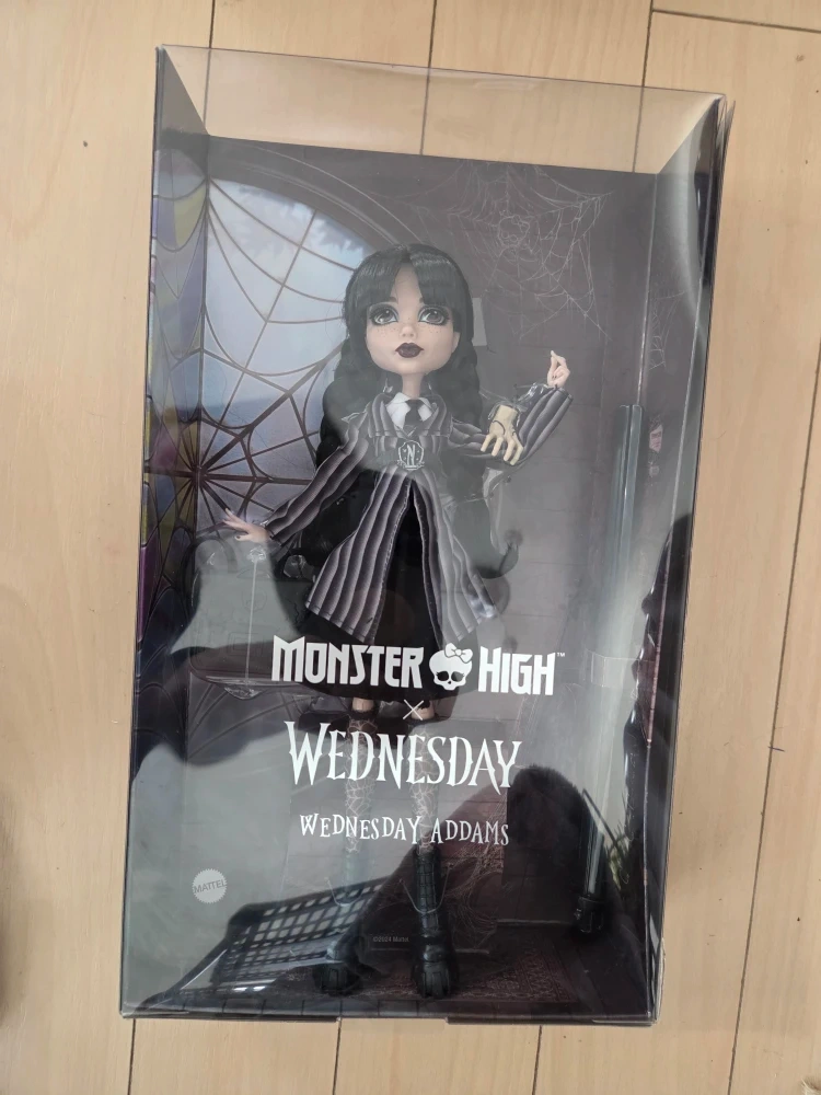 Selling a brand new, in-box Monster High doll, a collaboration with Wednesday Addams! The box is in great condition, perfect for collectors or fans of either franchise