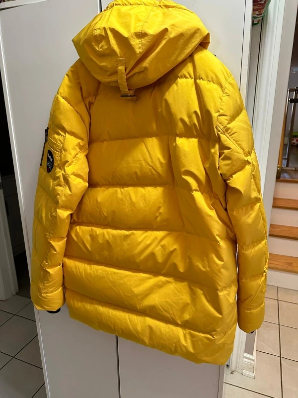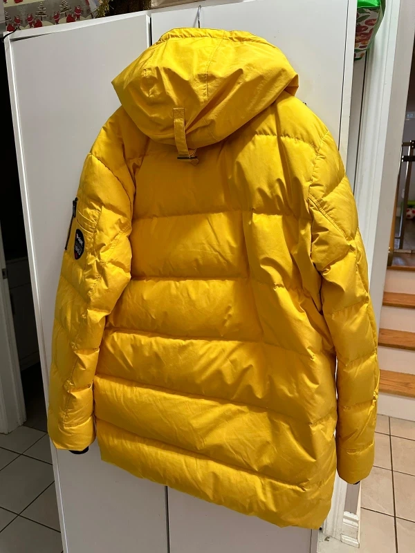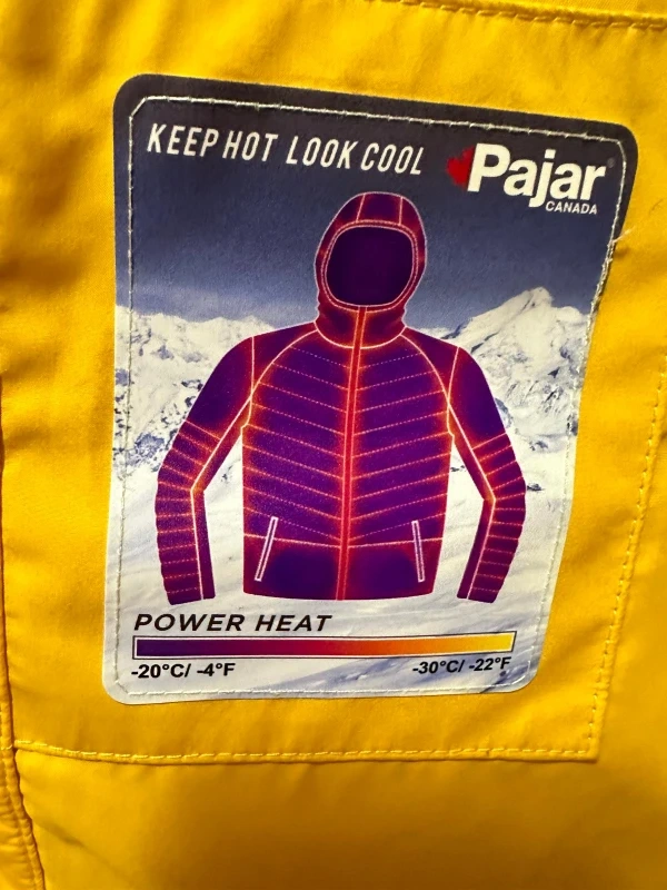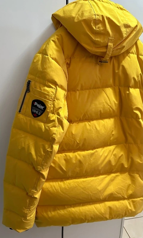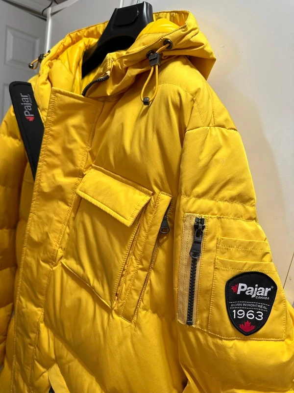Selling a Pajar Canada puffer Men jacket in a vibrant yellow! It's a size large. This jacket is designed to keep you warm even in cold temperatures, as it's rated down to -30°C/-22°F. Perfect for those chilly Canadian winters!