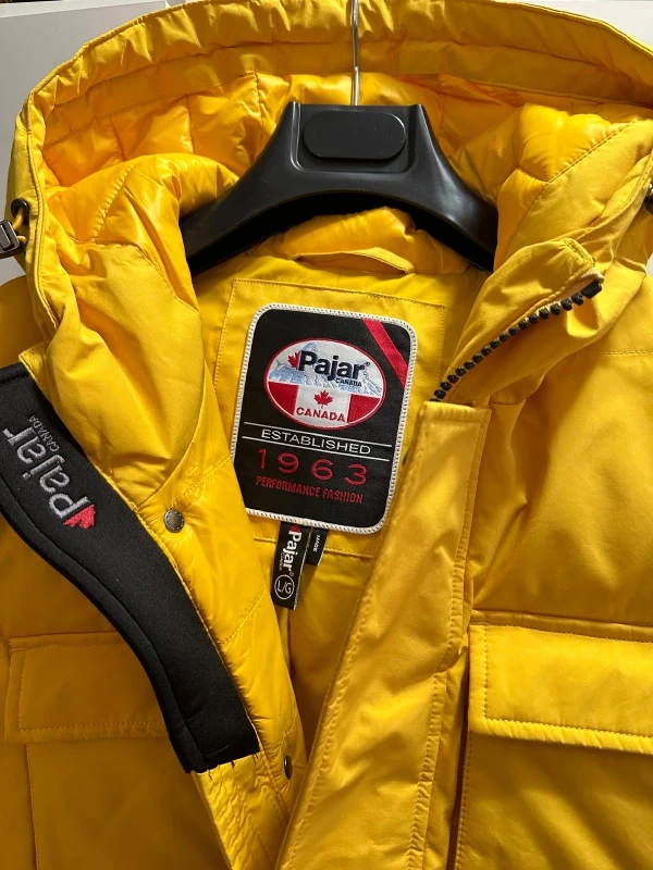 Selling a Pajar Canada puffer Men jacket in a vibrant yellow! It's a size large. This jacket is designed to keep you warm even in cold temperatures, as it's rated down to -30°C/-22°F. Perfect for those chilly Canadian winters!