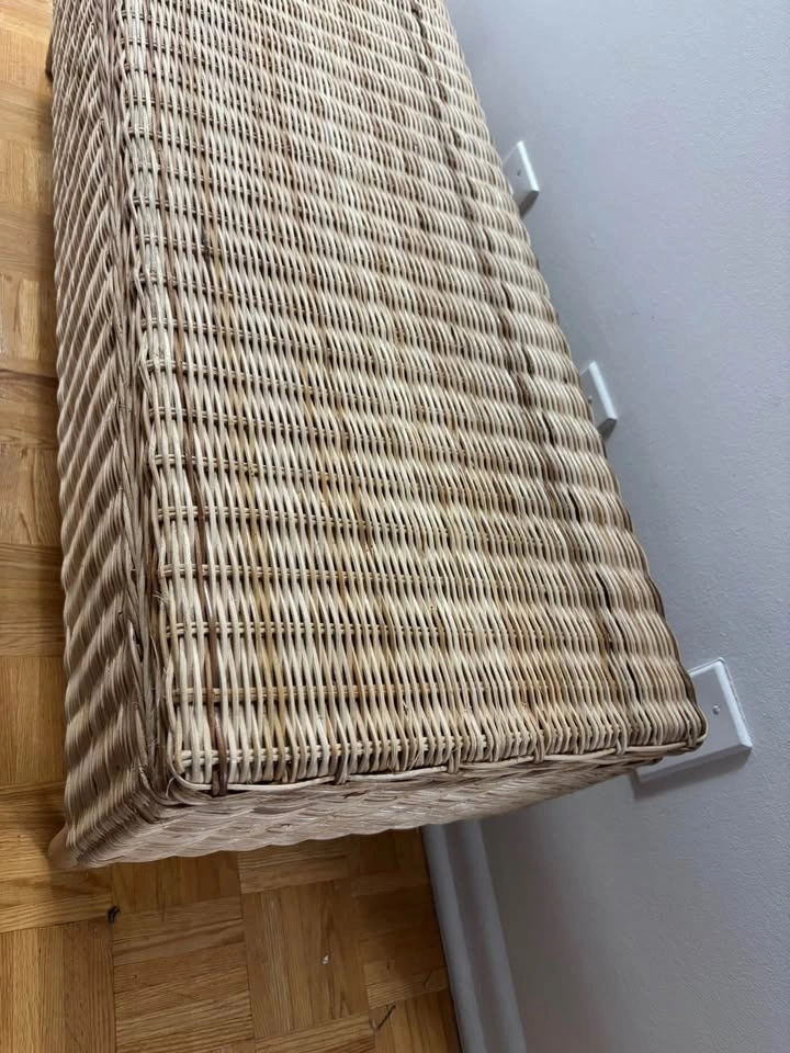 TOLKNING IKEA wicker and wood bench. Amazing condition, added hinges for easier open and close. Storage compartment inside, can hold a couple of blankets. Seats 2 comfortably or 3 side-by-side. 180 kg weight limit. Pickup only near York mills