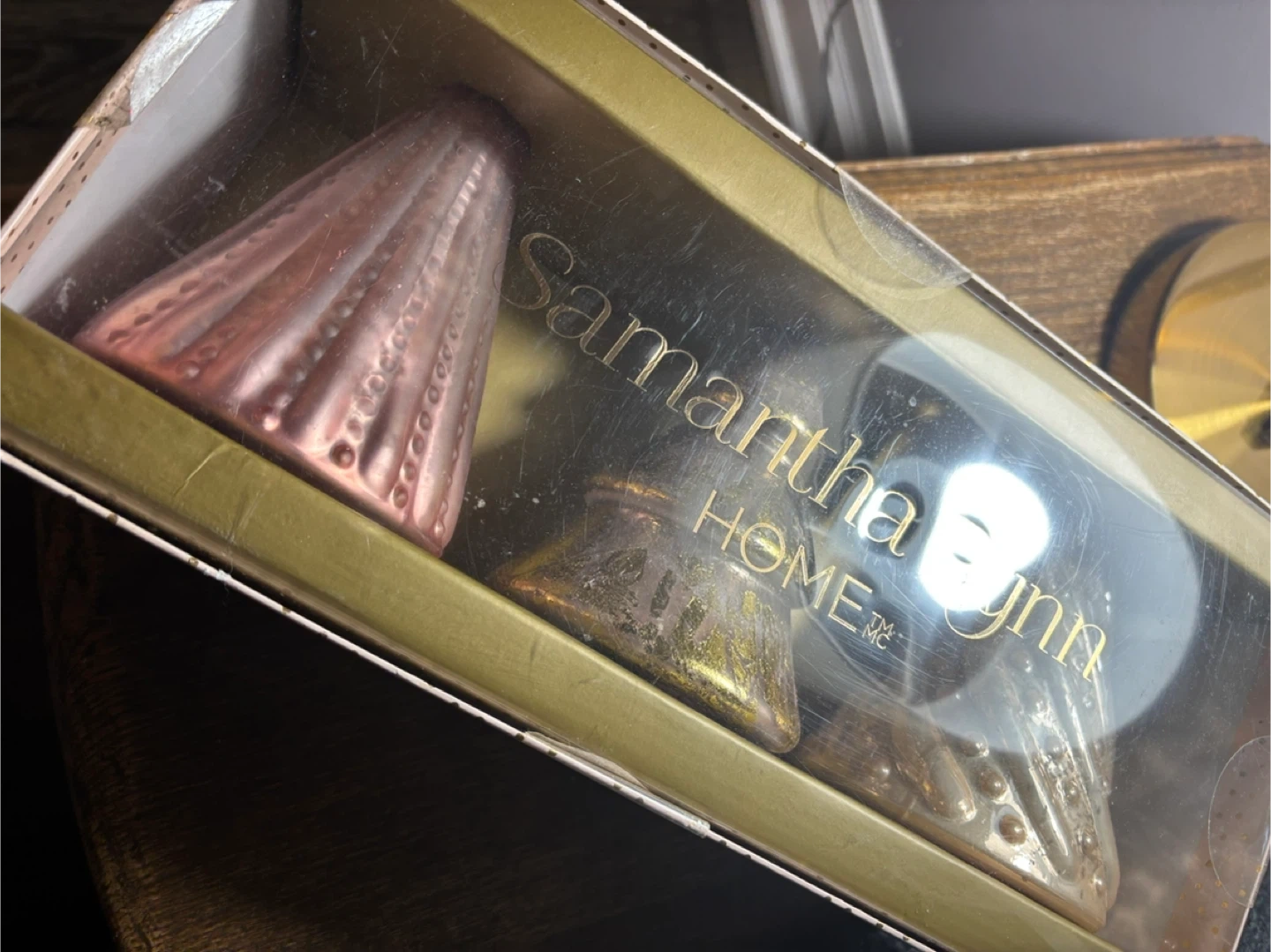 Selling a set of brand new 3 mercury glass Xmas trees from Samantha Pynn Home. They come in rose gold, gold, and silver tones. Perfect for adding a touch of elegance to your home decor! They are approx 5” high.