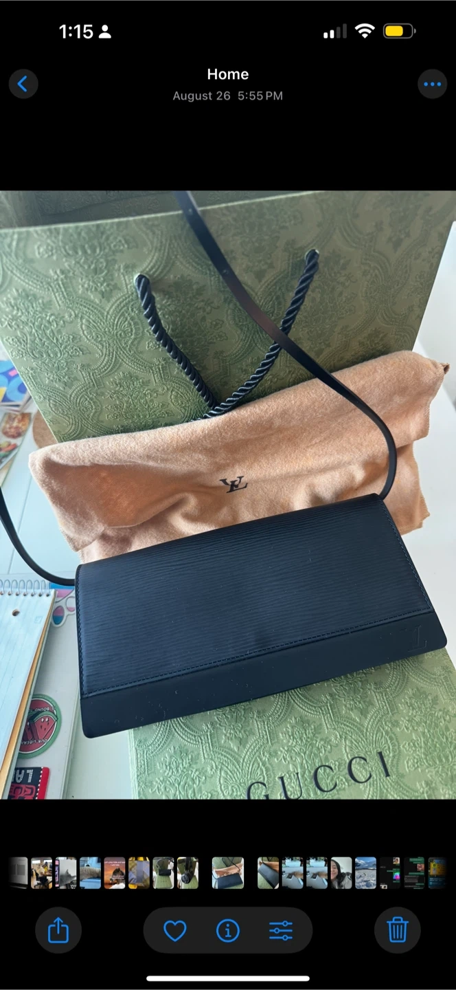 Selling a stylish Louis Vuitton Pochette Bourse bag in black Epi leather! It's a sleek and compact bag, perfect for carrying essentials. Comes with its original dust bag.