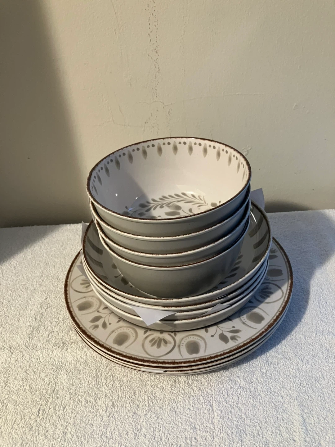 If you have a moment check out my other great deals and some come with free items. Great Christmas ideas. Please view all the pictures so you will see exactly what you will be getting. Better Homes & Garden set of 12 dinnerware. There 4 each dinner plates, dinner bowls , and cereal bowls. Gray color. I also included 2 free gifts. 4 piece travel spoon,fork and chopsticks in a nice carry / storage case $12.99 on Amazon and a toaster mini light with charging cord $15.99 on Amazon. Again both free. Only pay $35 for everything. PICK UP AND CASH ONLY