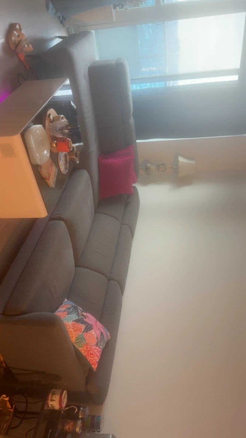 Selling a comfortable grey sectional sofa. It's in great condition and perfect for a living room or family room. It features a modern design and is made of a durable material. If you're looking for a stylish and functional piece of furniture, this could be it!