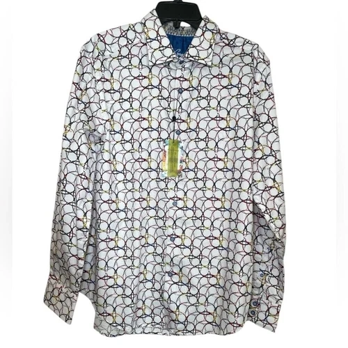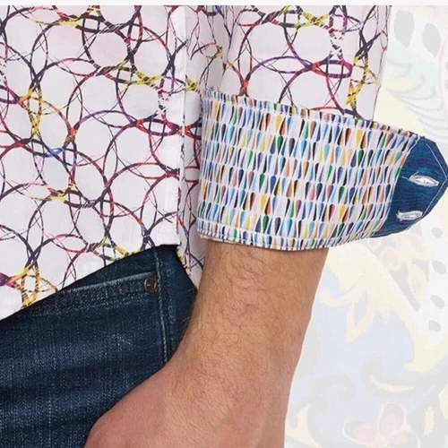 Elevate your style with this multicolor patterned shirt. Perfect for any occasion, this shirt offers a blend of comfort and fashion. Brand new with tags MSRP $198 The first five pictures are of the actual product. The rest are for you to see the fit. Point collar Long sleeves Button cuffs Button front Cotton Classic fit Material: 100% cotton Made in India Excellent condition comes from a pet free smoke free home