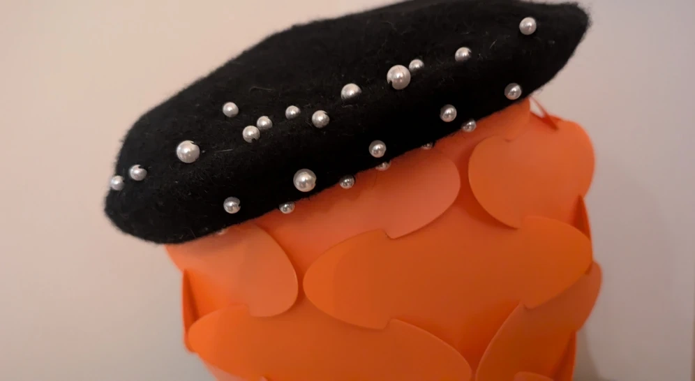 Black Beret with Pearl Details