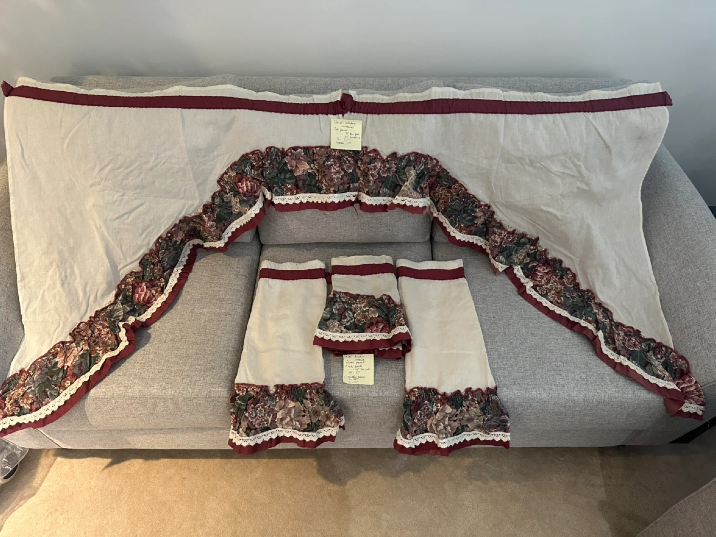 Size: Top panel L: 31 inches (one side) H: 37 inches. Middle: 12 inches
