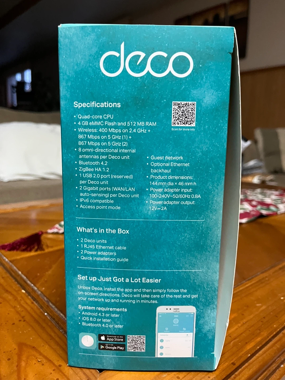 Selling a TP-Link Deco M9 Plus AC2200 Smart Home Mesh Wi-Fi System. It's in great condition and comes with the box.