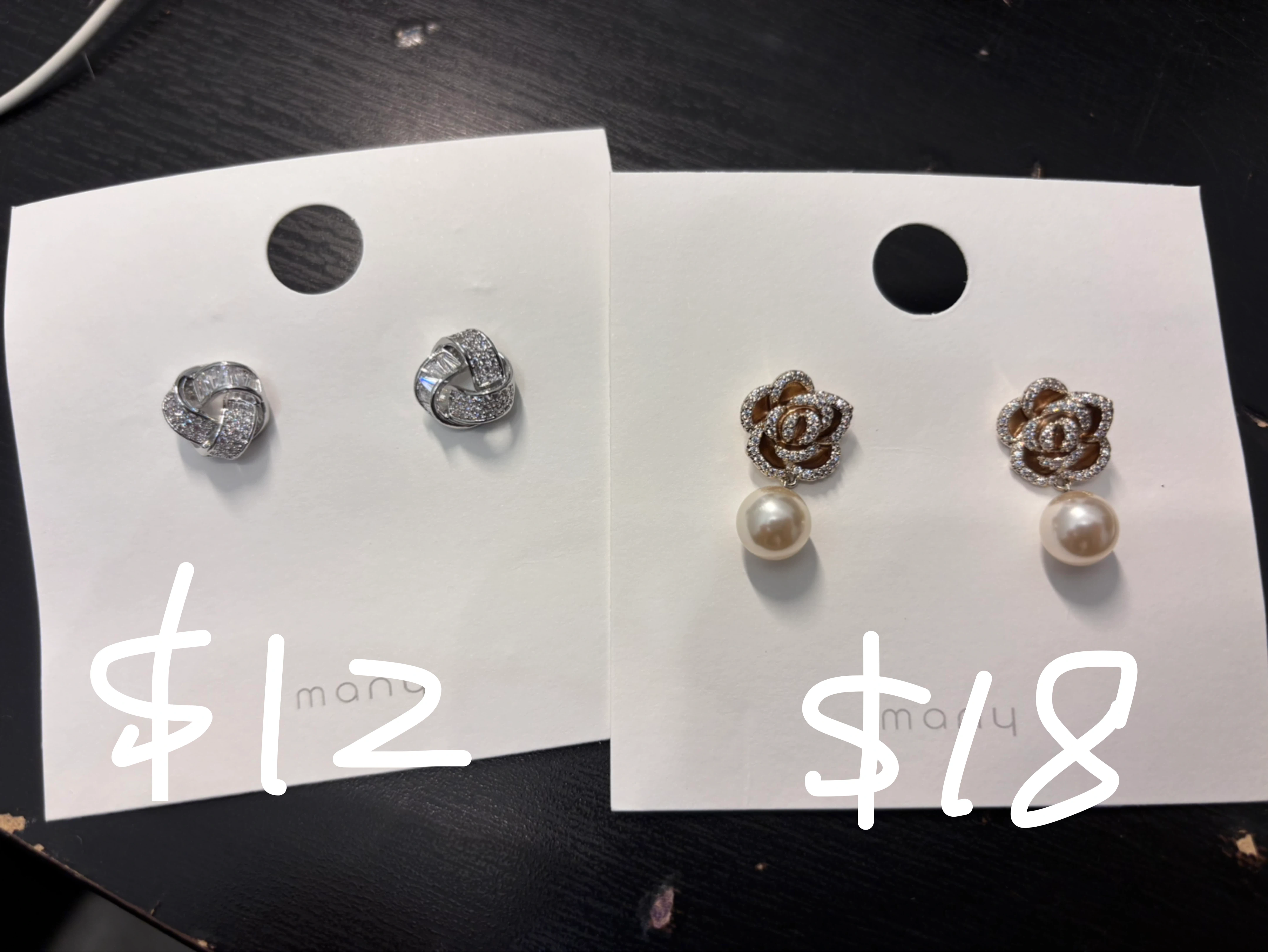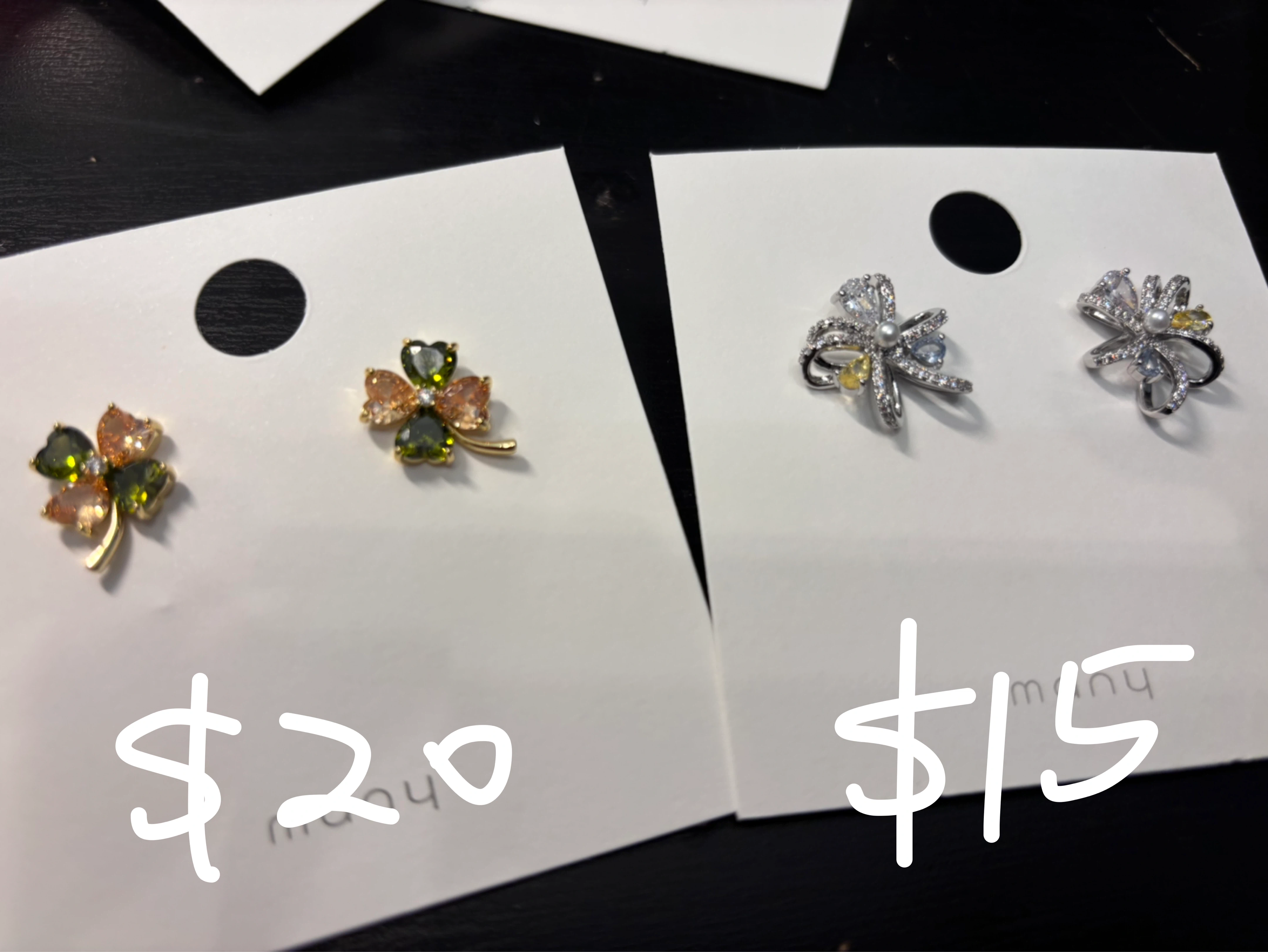 Selling a variety of cute stud earrings! Each pair has its own unique style. Perfect for adding a little something extra to your outfit. Check out the photos to see all the different designs !