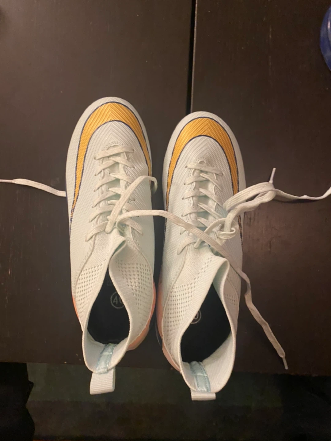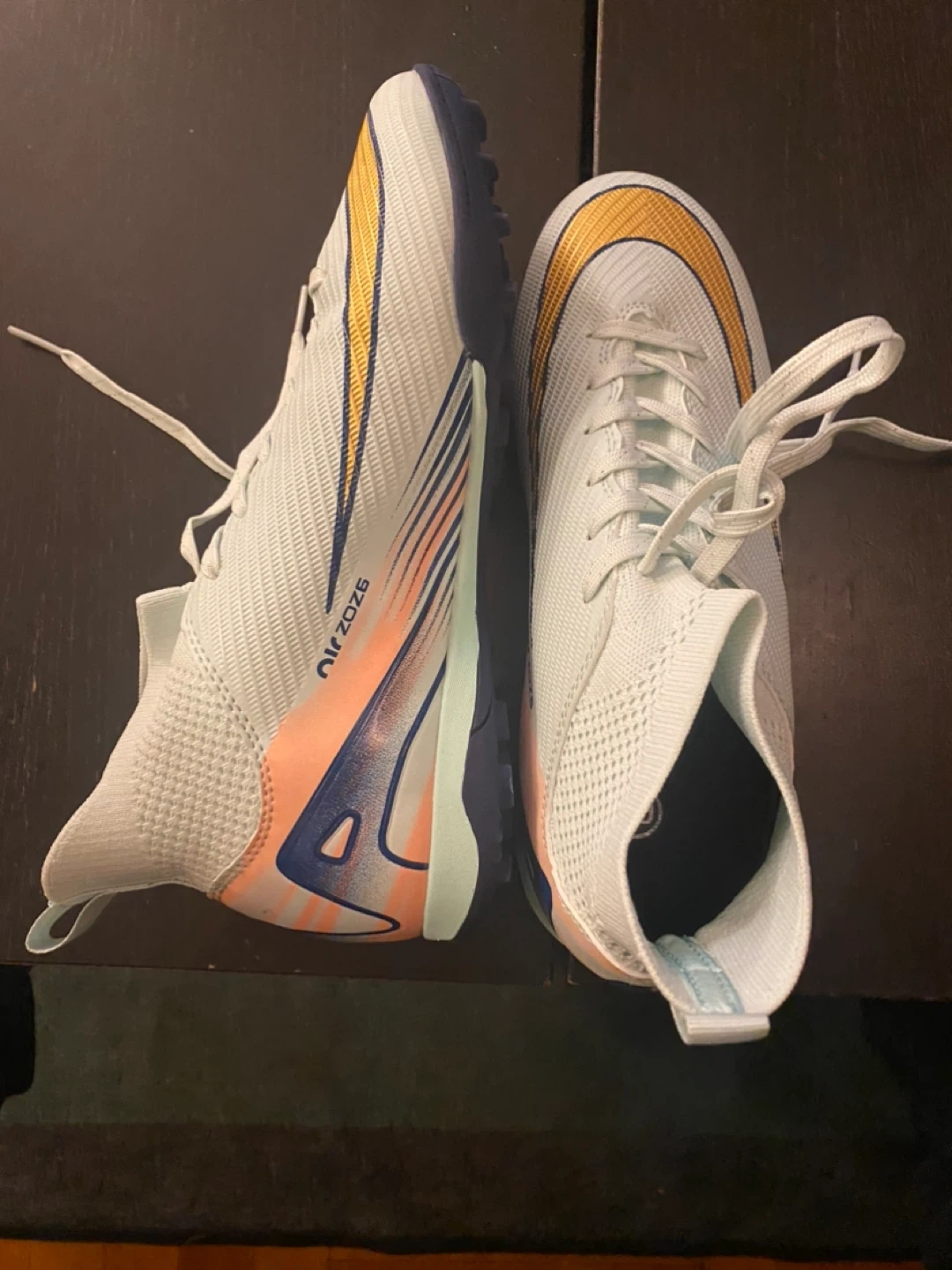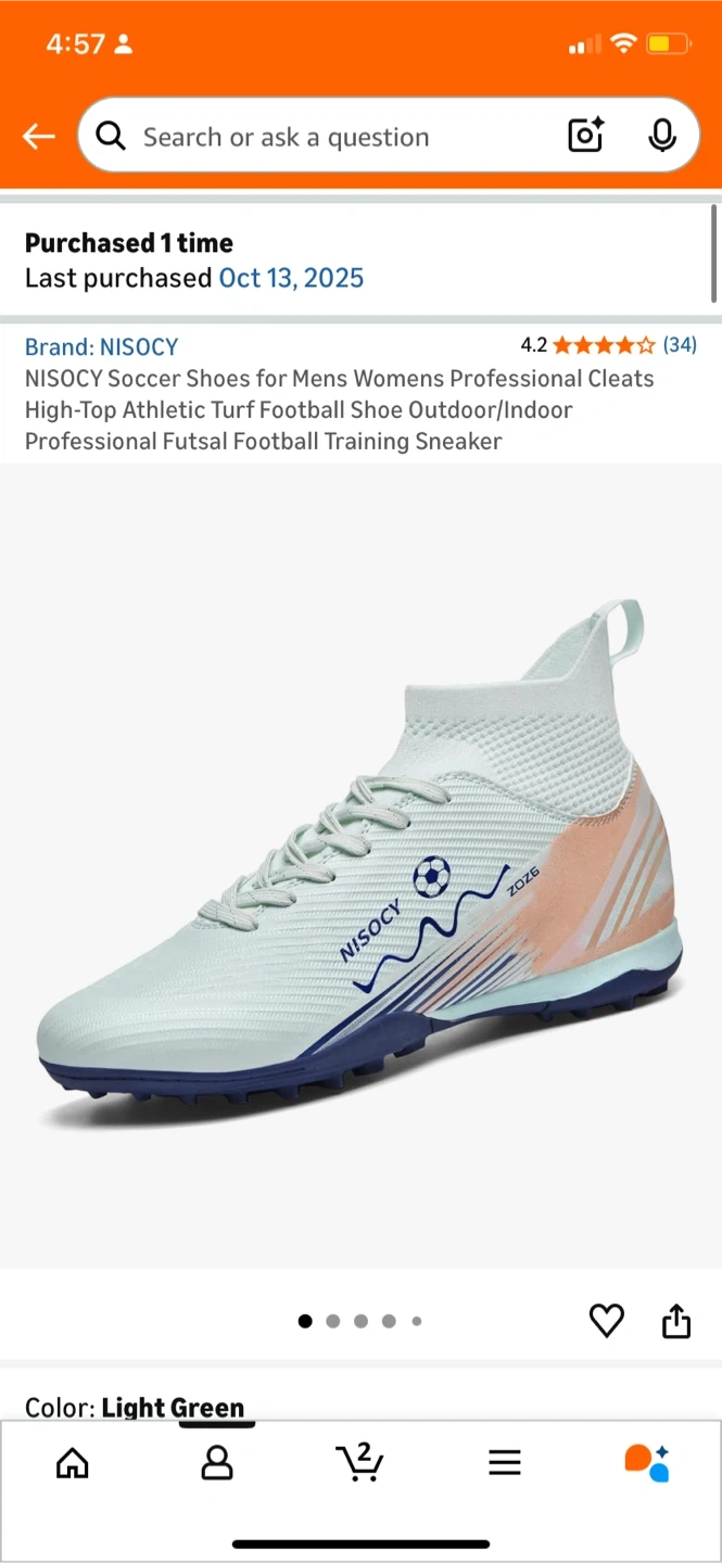 Selling a pair of NEVER USED NISOCY soccer shoes in light green. These are high-top athletic turf shoes, perfect for outdoor or indoor training. Size 7.5 but fit more like an 8 in women’s.