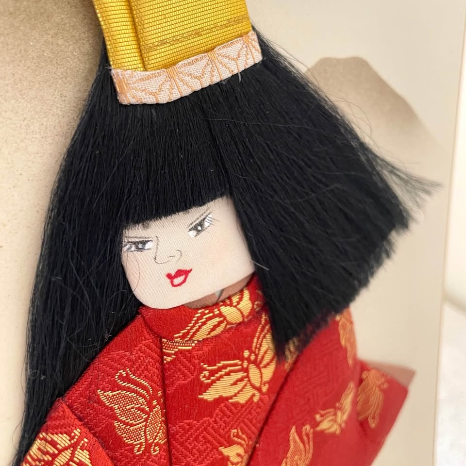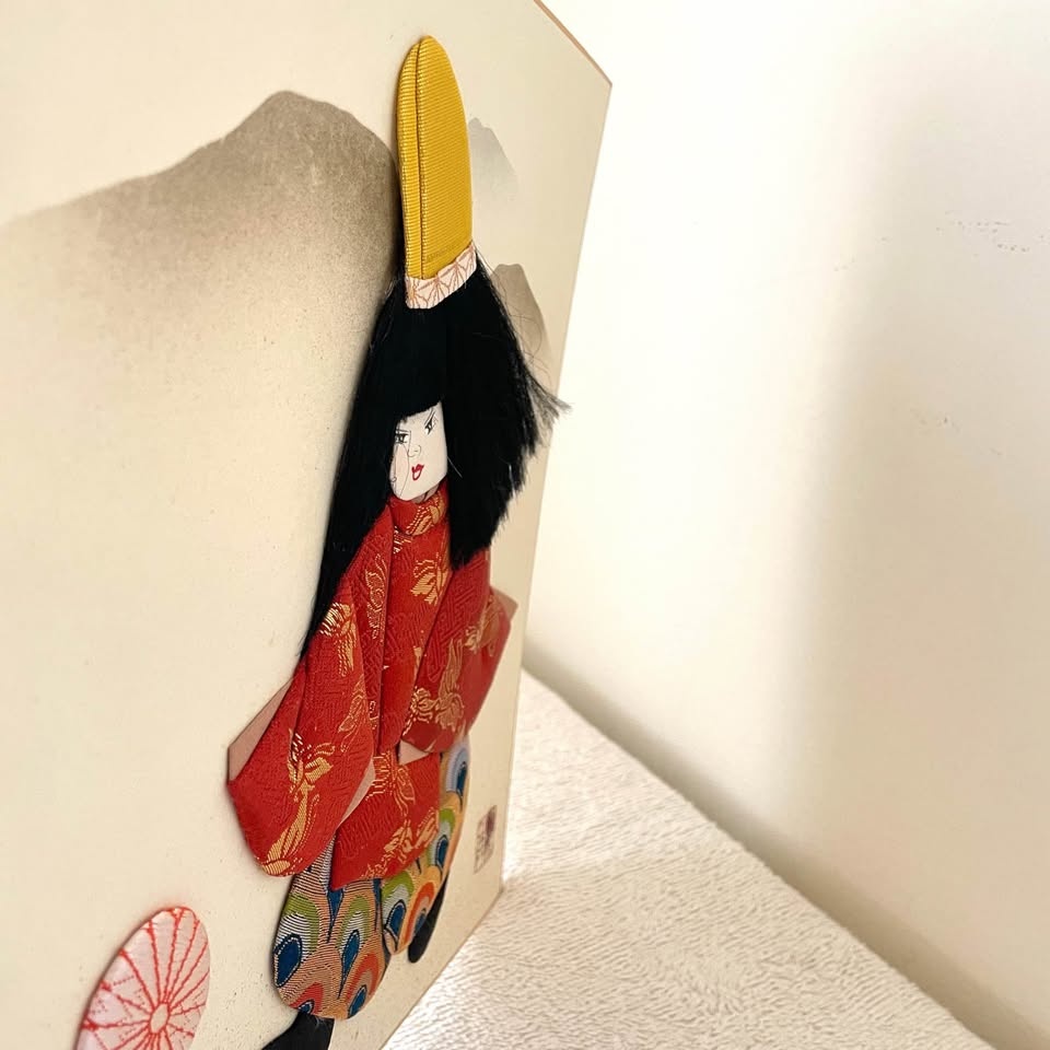 A traditional Japanese “oshie” (押絵) textile art, made by layering and lightly padding small pieces of “chirimen” crepe fabric for a soft 3D effect.