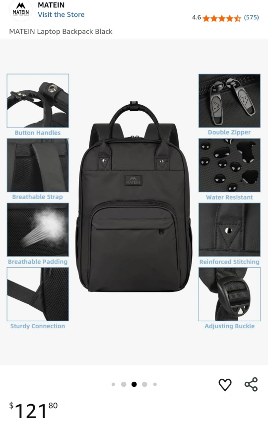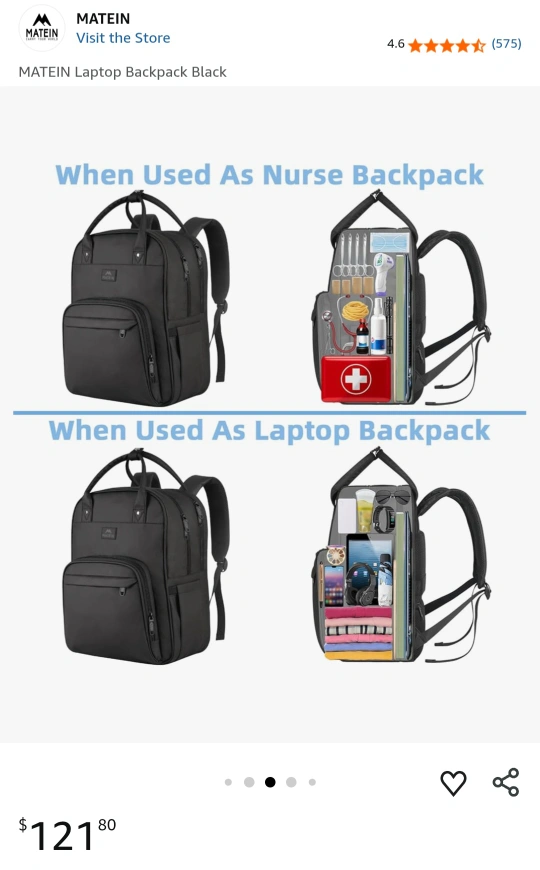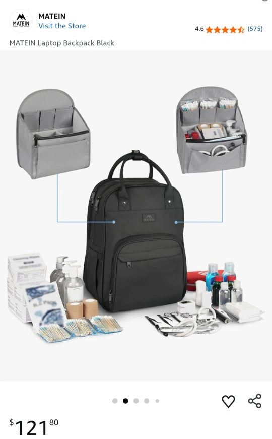 This MATEIN laptop backpack in black is perfect for carrying your laptop and other essentials! It features multiple pockets for organization, including a laptop pocket, middle pocket, organizer pocket, and front pocket. It can also be used as a nurse backpack. Originally bought for $121.80