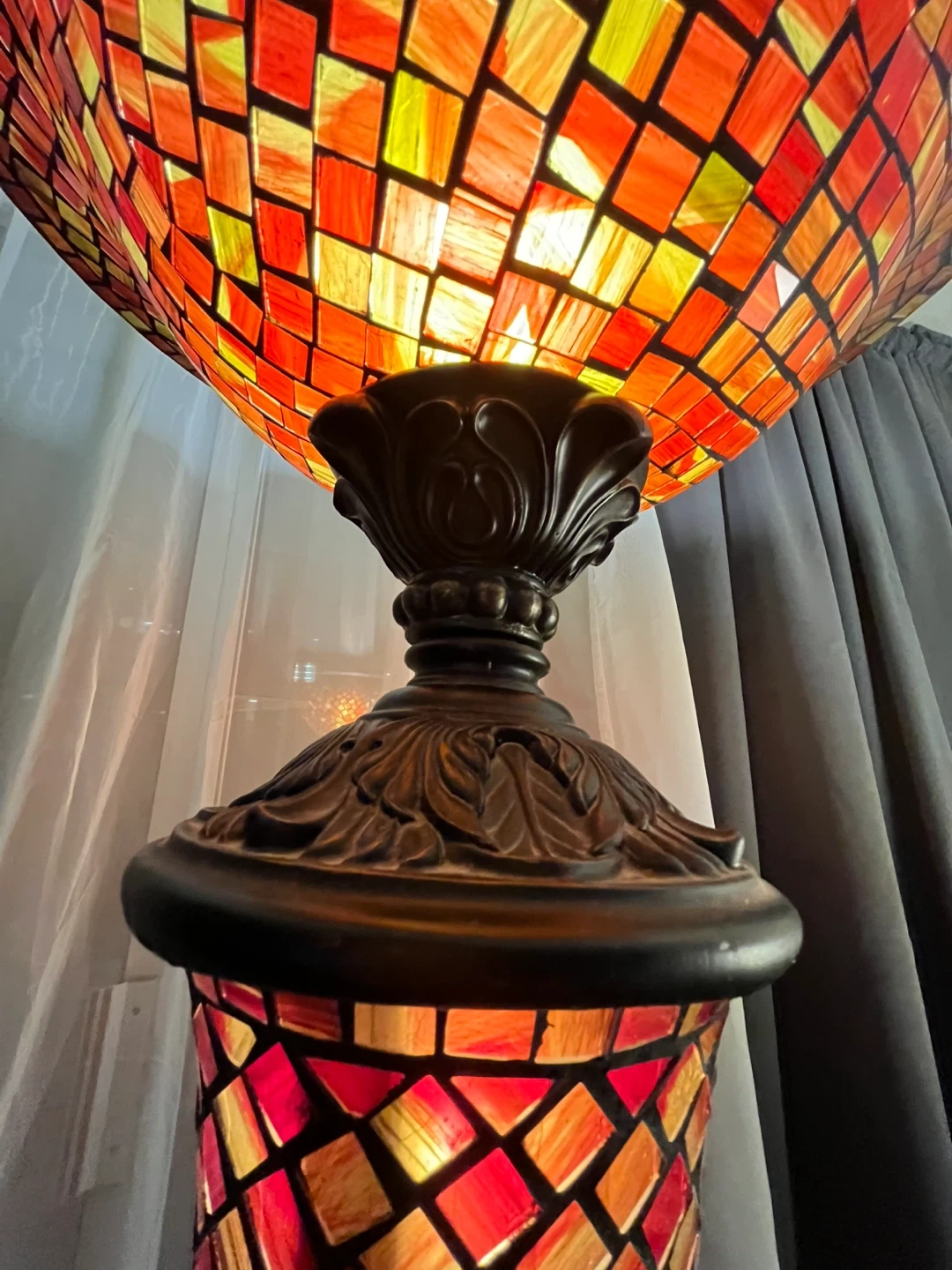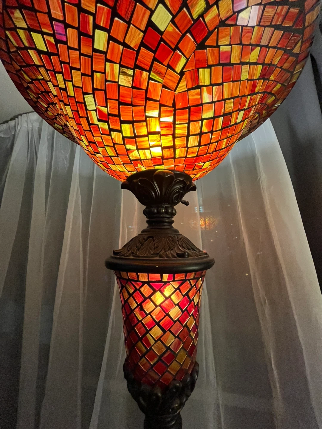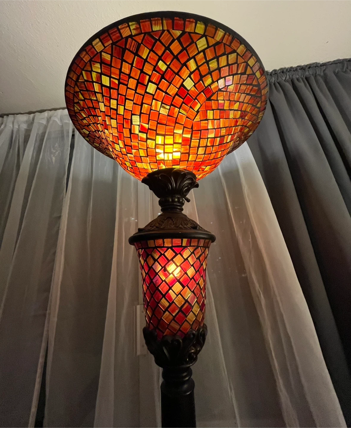 The mosaic design in shades of red, orange, and yellow makes any room look beautiful and cozy