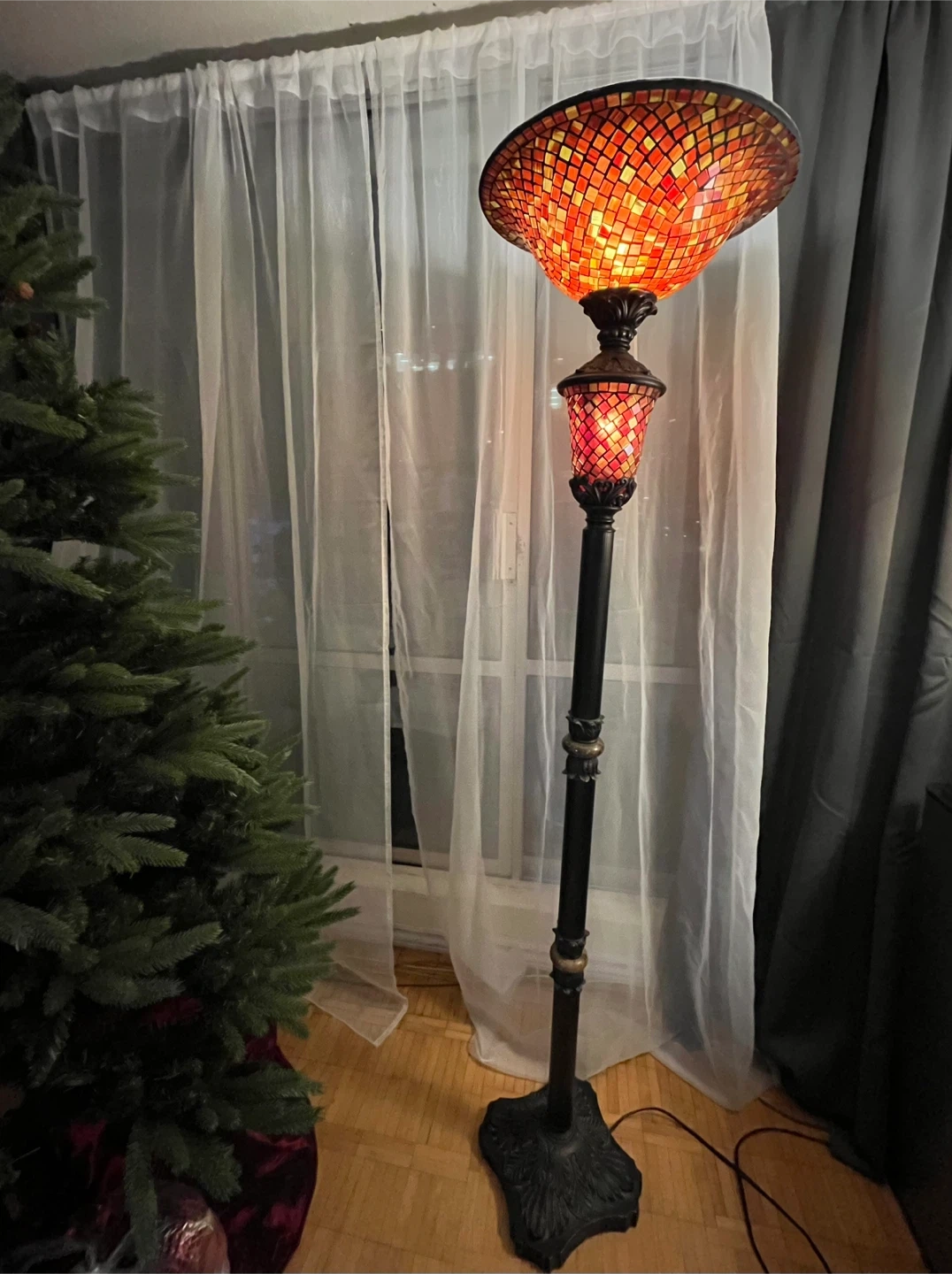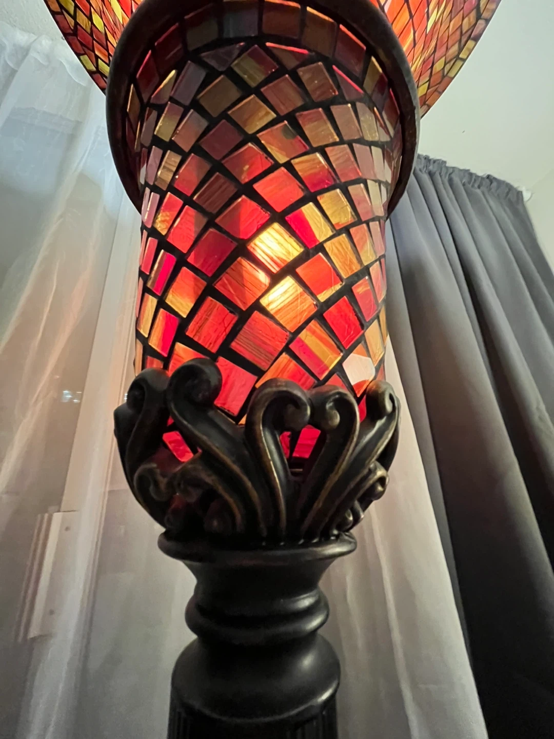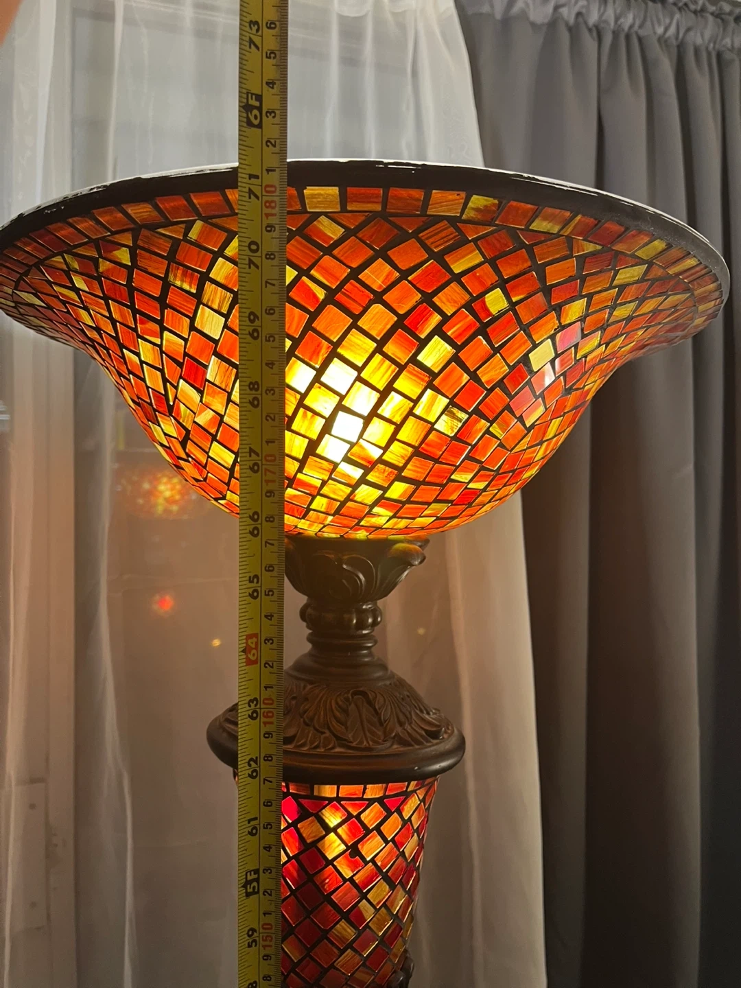 The mosaic design in shades of red, orange, and yellow makes any room look beautiful and cozy