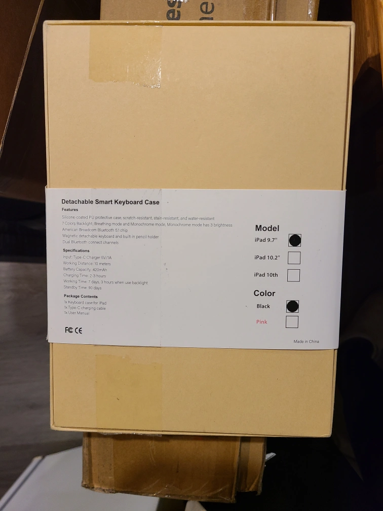 It's a detachable smart keyboard case with features like scratch-resistant, stain-resistant, and water-resistant material. It also has American Broadcom Bluetooth 5.1.