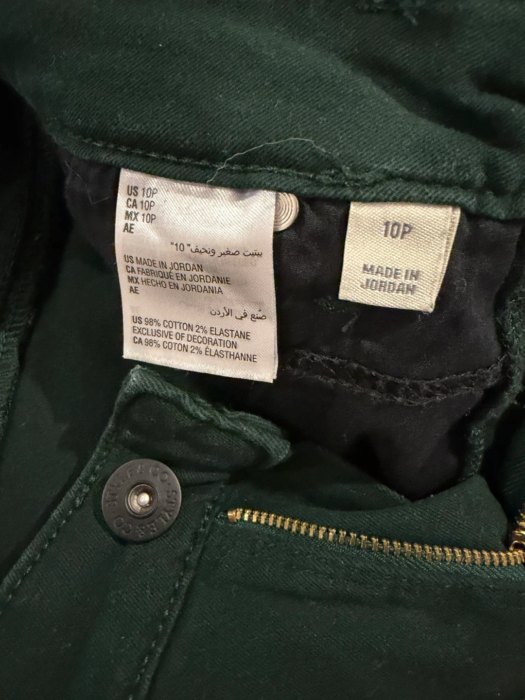 Selling a pair of Style & Co. Curvy Skinny Leg jeans in size 10P! These jeans are a stylish dark green color and made from 98% cotton and 2% elastane for a comfortable fit