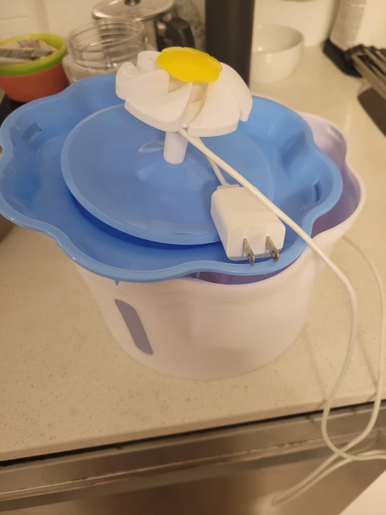 Selling a pet water fountain with a cute flower design! It's in great condition and comes with the power adapter. Perfect for keeping your furry friends hydrated with fresh, flowing water. No filter, filtets can be bought on Amazon.