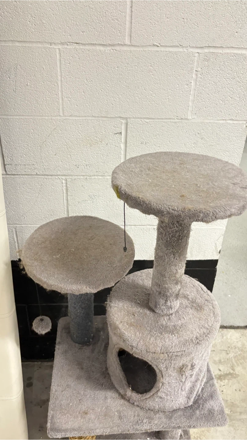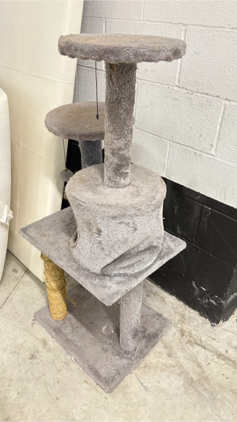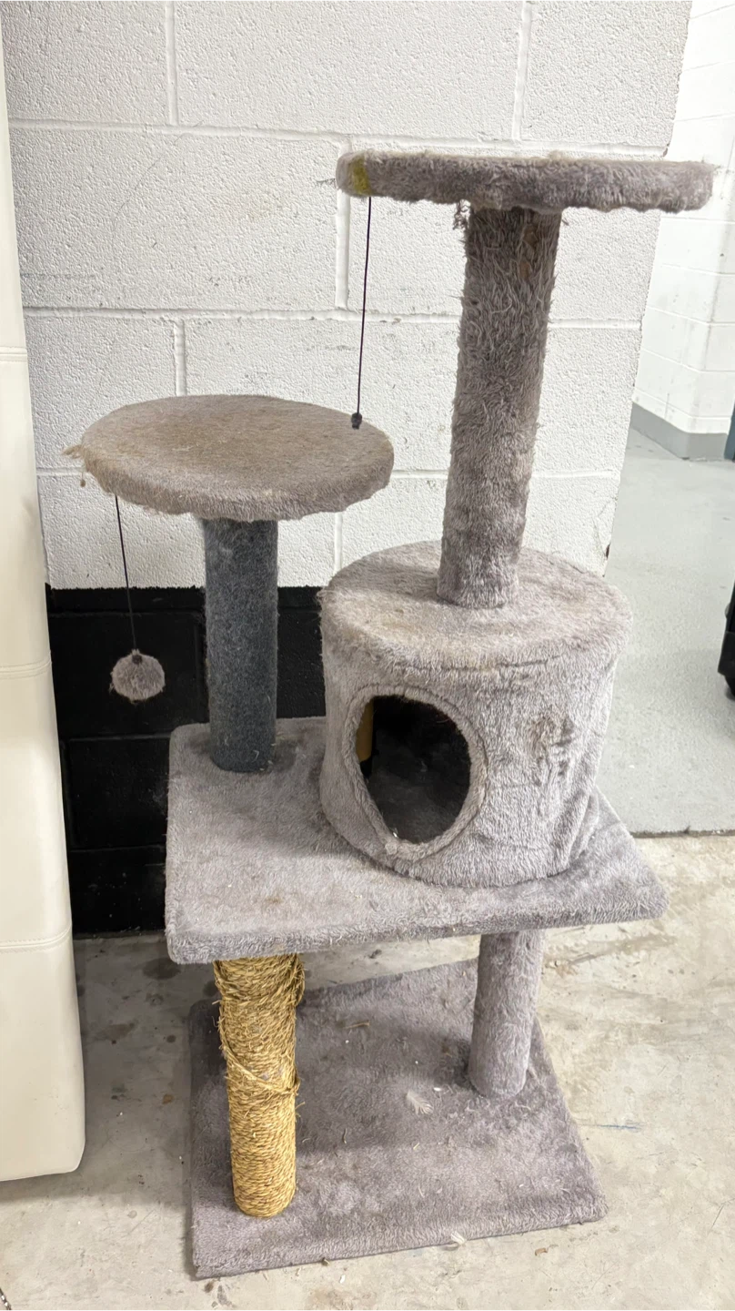 Selling a used cat tree. It has multiple levels for your cat to explore, a scratching post, and a little hideaway. It's a great way to keep your feline friend entertained! There are some signs of wear.