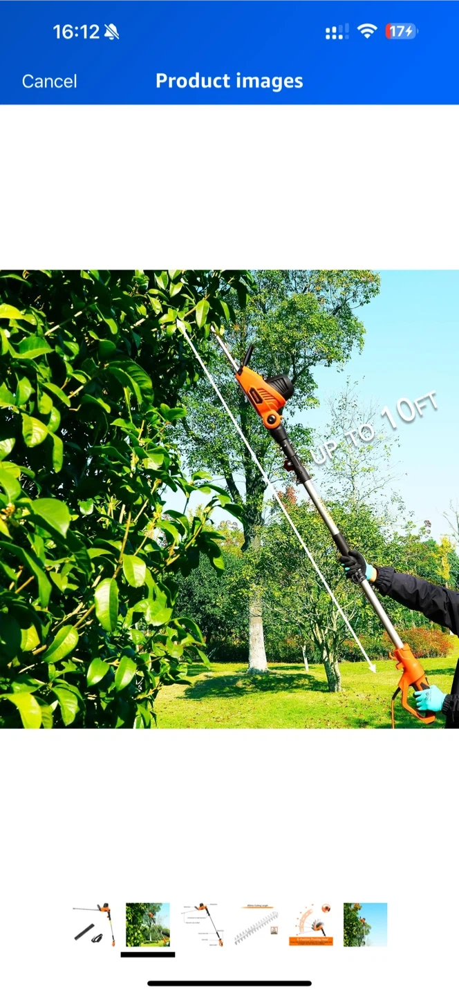 Looking to keep your hedges in tip-top shape? This GARCARE cordless pole hedge trimmer might be just what you need! It features a dual-action laser cut blade and a 6-position pivoting head for easy trimming at different angles. The cutting length is 450mm. It can reach up to 10ft!