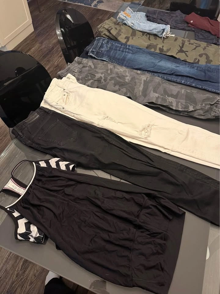 Pants, jeans, skirts, dresses, tops, leggings.