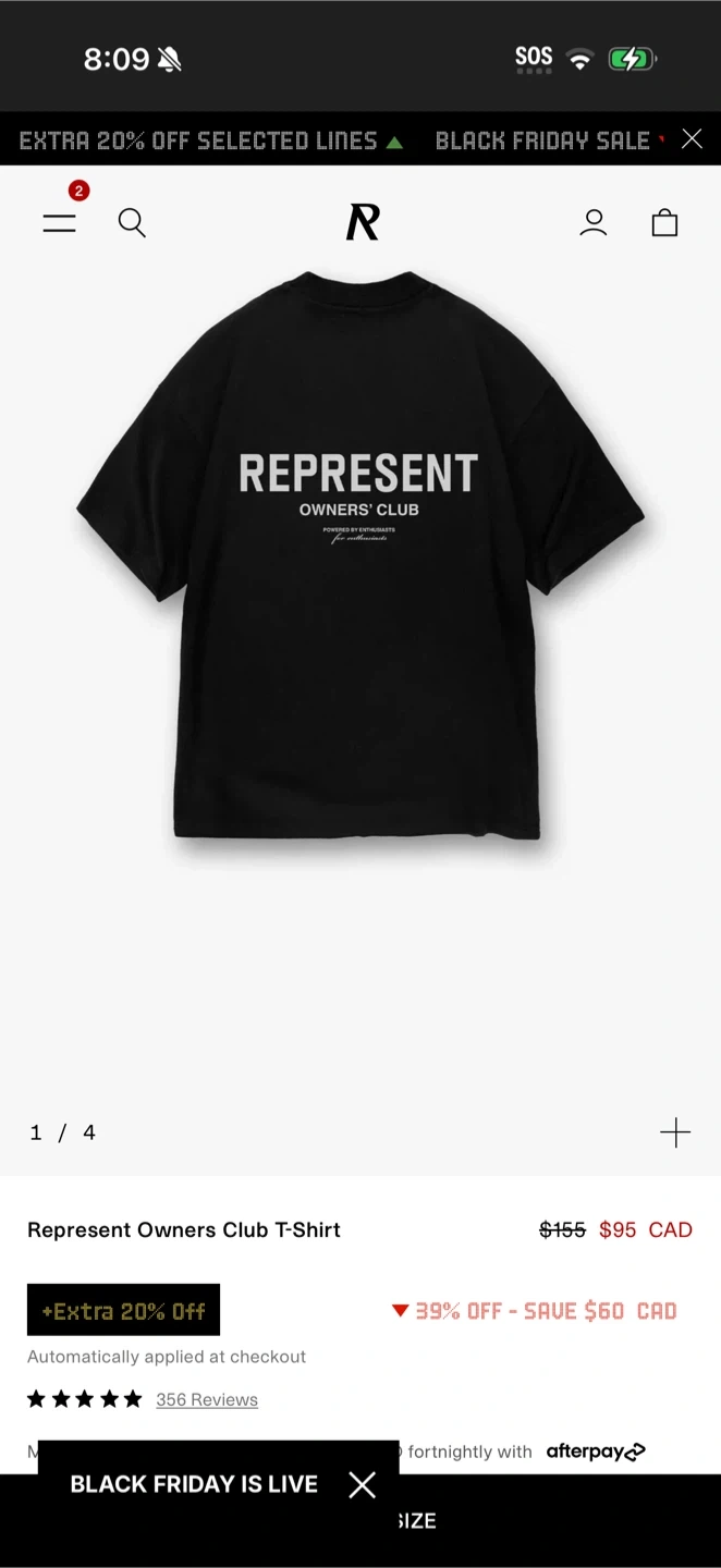 Represent shirt black fits both large and medium new just came from package on store it’s worth almost 100 $ (negotiable)