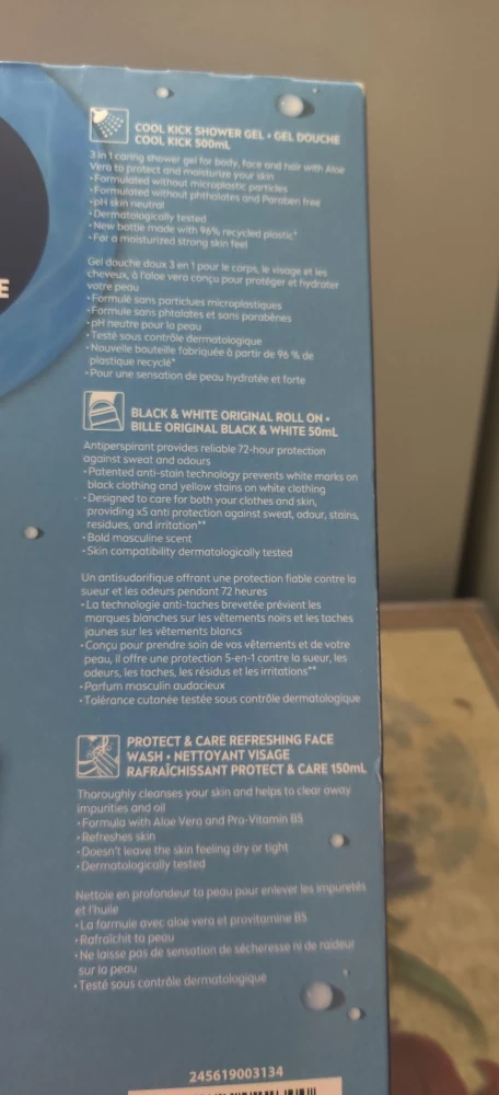 - Black & White Original Roll-On (50ml): Provides 72-hour protection against sweat and odour