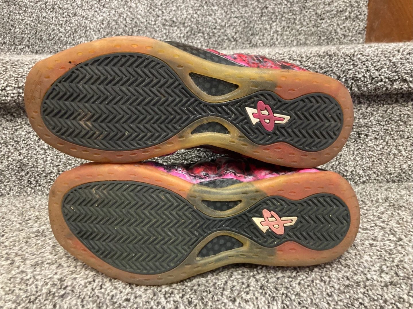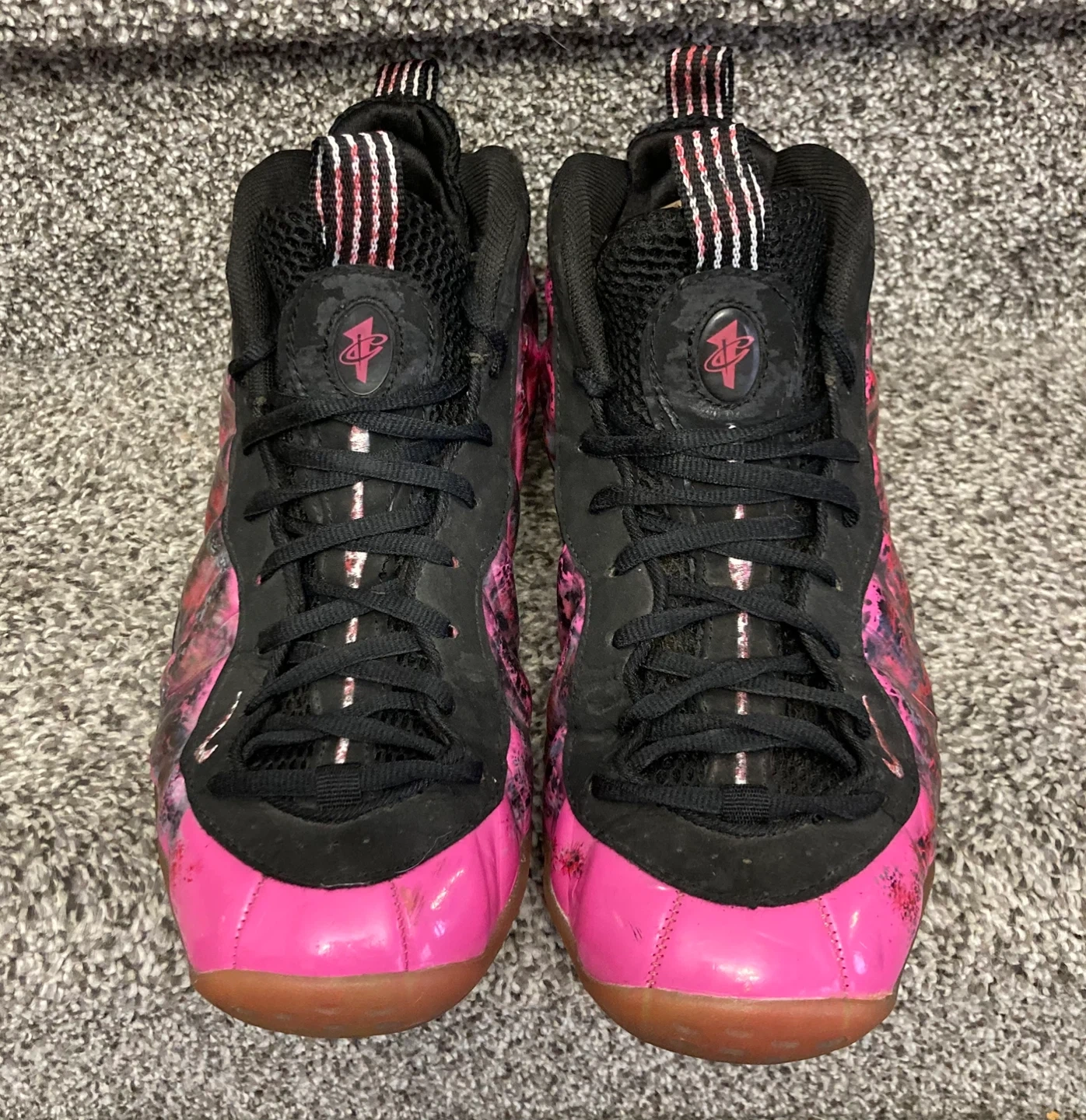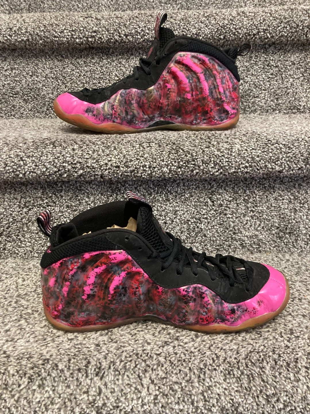 Selling a pair of Nike Air Foamposite One sneakers in a cool pink marble design. They are a US size 10. These shoes have a unique look and are in good condition for casual wear or to add to your collection!