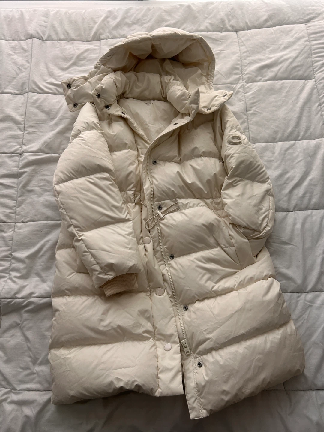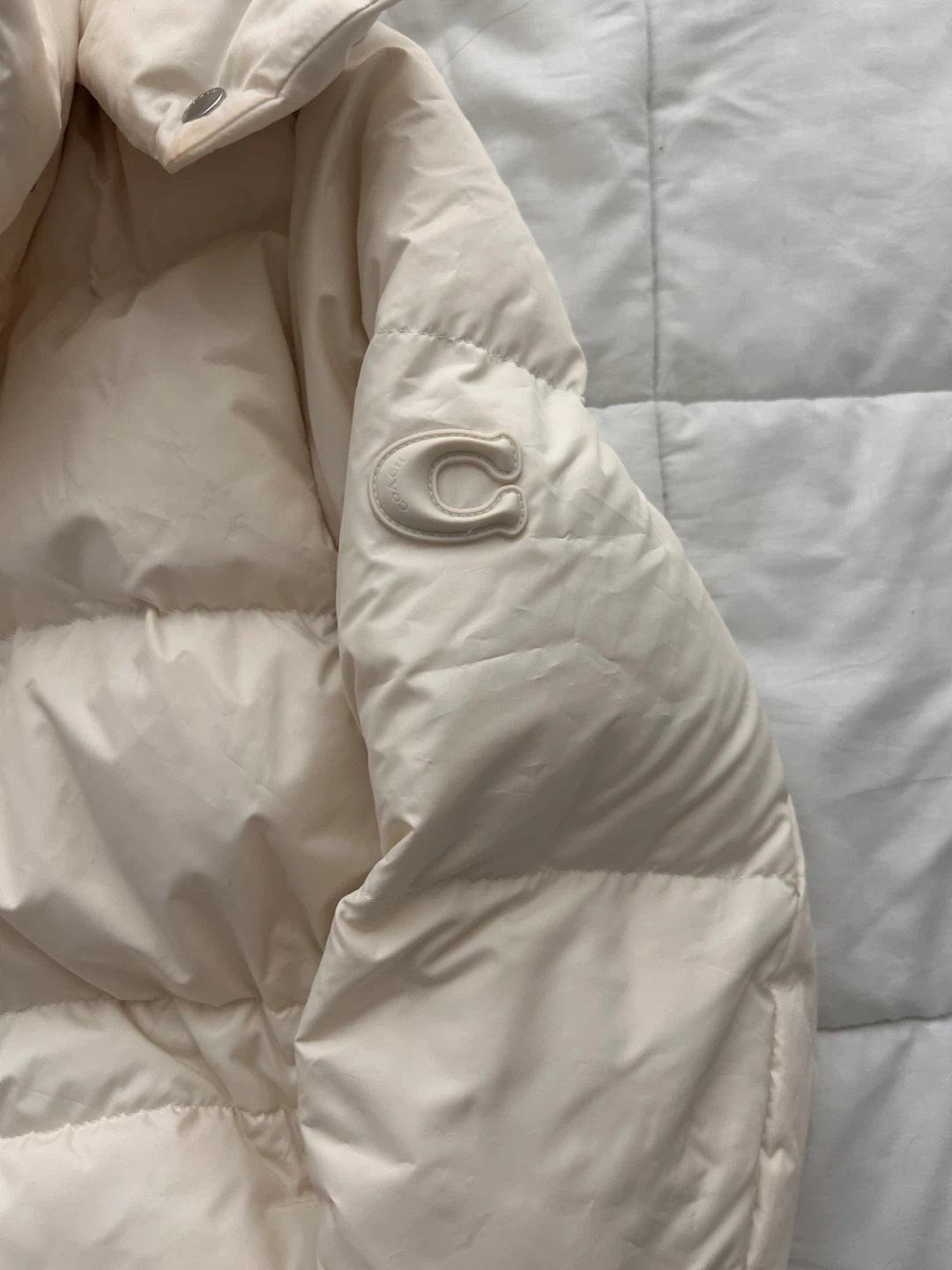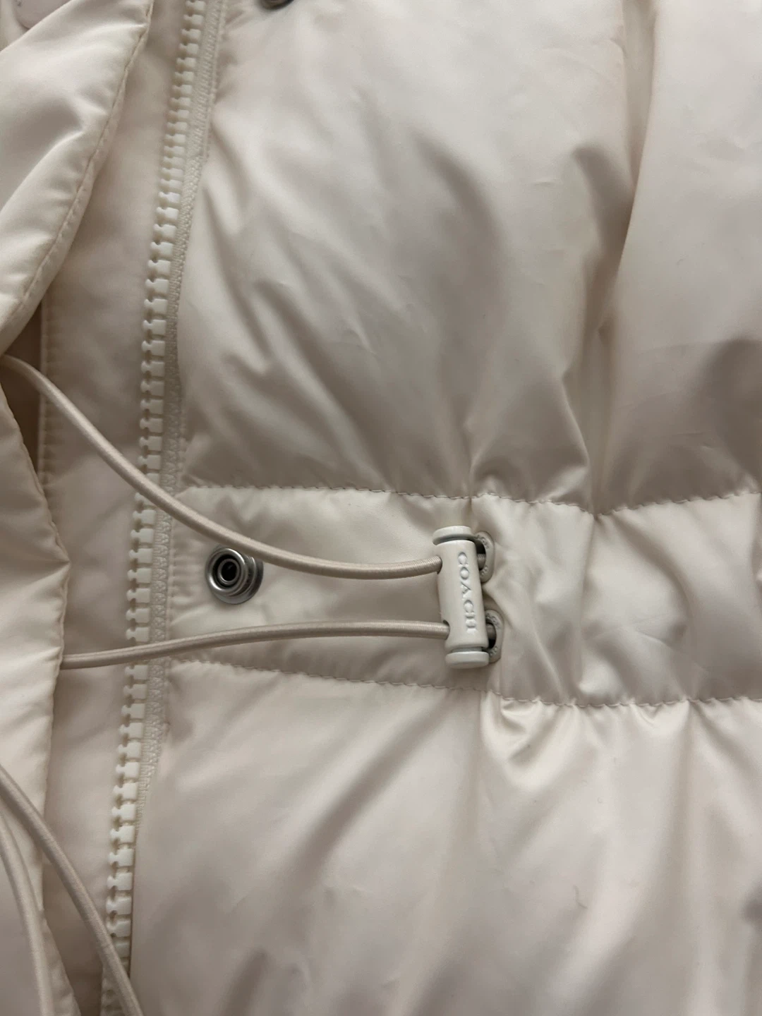 Selling a Coach puffer coat in a size small. It's a beautiful, neutral colour and has a hood. Perfect for staying warm this winter!