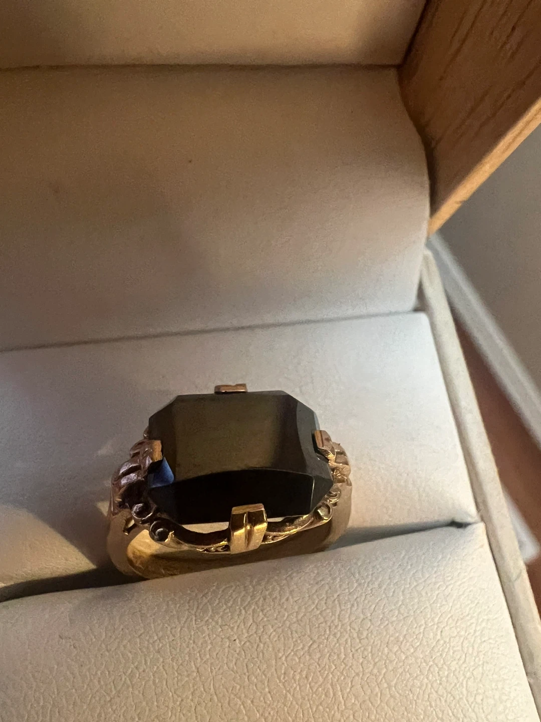 Selling a vintage ring with a black Alaskan marked as 10K gold. It's a unique piece with a classic design. The ring is in good condition and ready to wear!