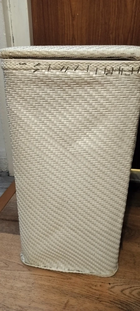Selling a wicker laundry hamper with a lid. It's in used condition with some wear and tear, as shown in the photos. Perfect for adding a touch of rustic charm to your laundry routine!