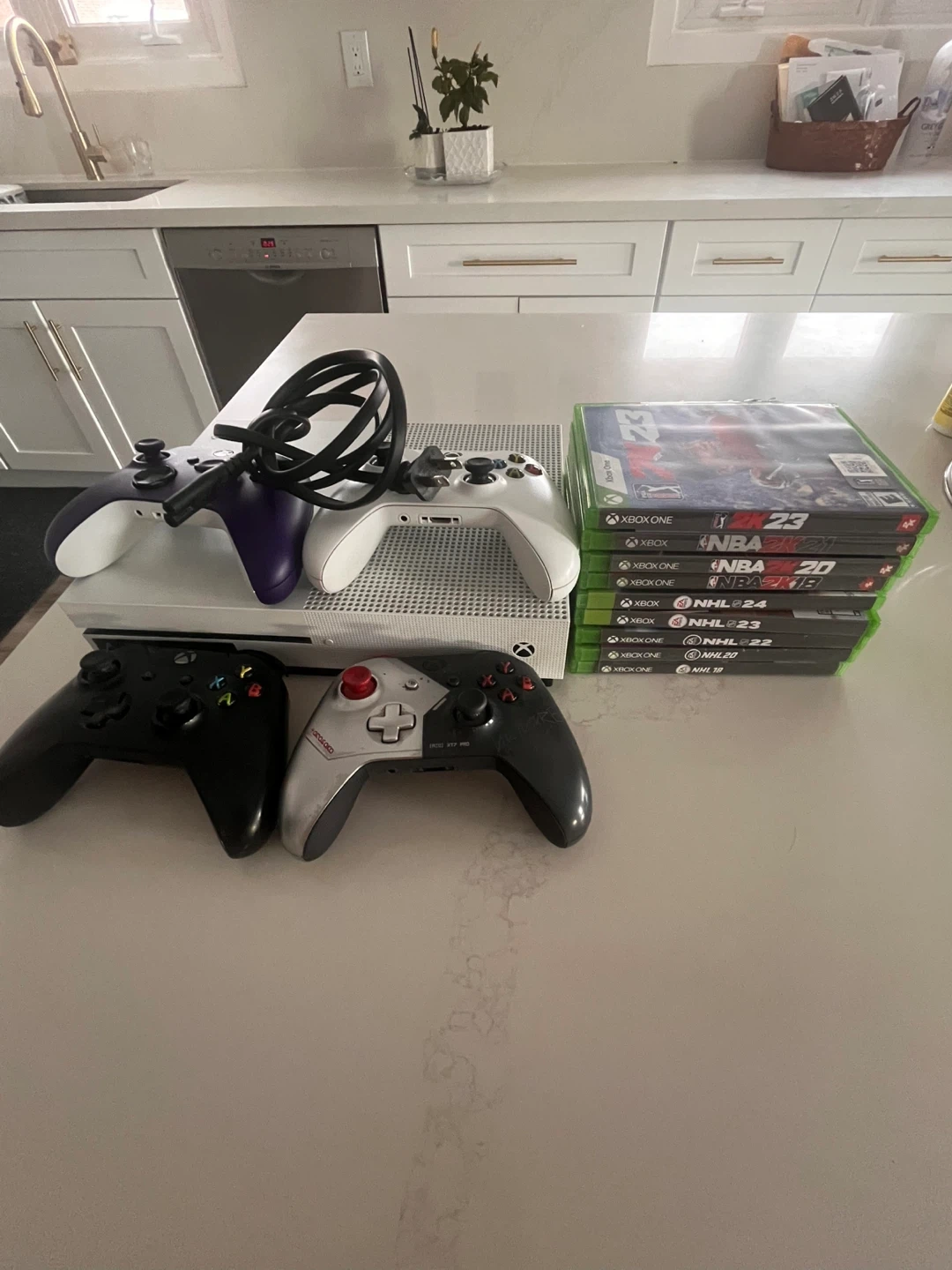 Selling an Xbox One S console in great condition! It comes with four controllers for multiplayer fun. Also included are several games to get you started