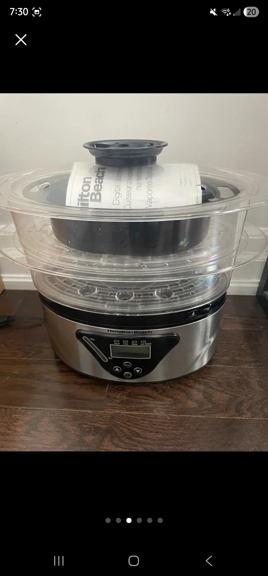 Selling a Hamilton Beach digital steamer. Barely used - It's in great condition and ready to help you make healthy meals! It has a digital display with settings for delay, cook, warm, and low water. Perfect for steaming veggies, rice, and more.