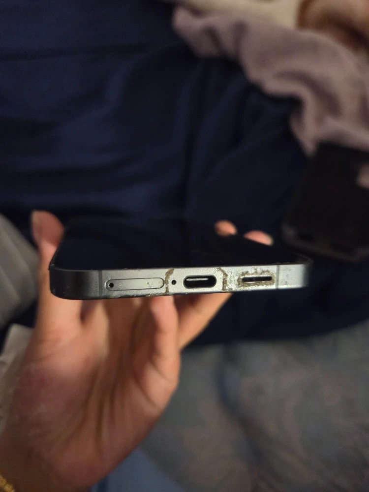 Phone just has some dirt from the case it was in either then that no scratches still works like its brand new screen is the original screen no repairs were made