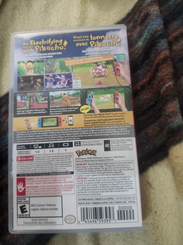 Selling a copy of Pokémon: Let's Go, Pikachu! for the Nintendo Switch. It's a fun adventure for everyone! The game is rated E for Everyone with Mild Cartoon Violence. Get ready for an electrifying adventure with Pikachu!