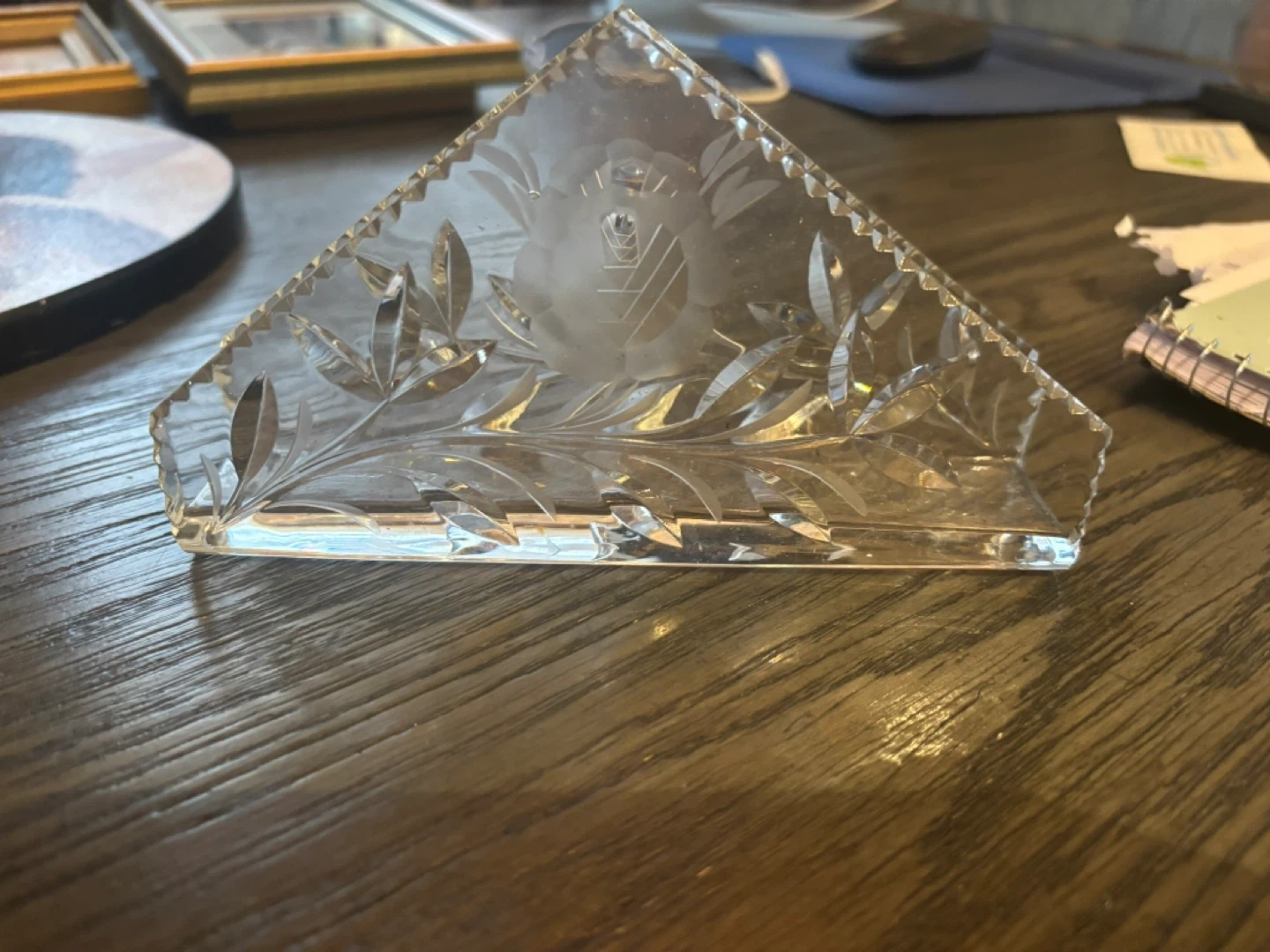 Selling a beautiful crystal napkin holder. It's in great condition and adds a touch of elegance to any table setting. Perfect for dinner parties or everyday use!