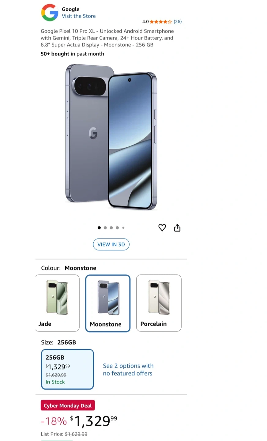 Selling a brand new Google Pixel 10 Pro XL in the Moonstone colour with 256GB of storage! It's still in its original packaging, Open Box . This unlocked Android smartphone has Gemini, a triple real camera, a 24+ hour battery, and a 6.8" Super Actua display. Don't miss out! BRAND NEW OPEN BOX RETAIL PRICE (1329+Tax 175= $1,504 )
