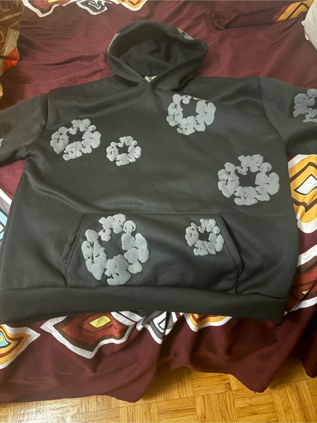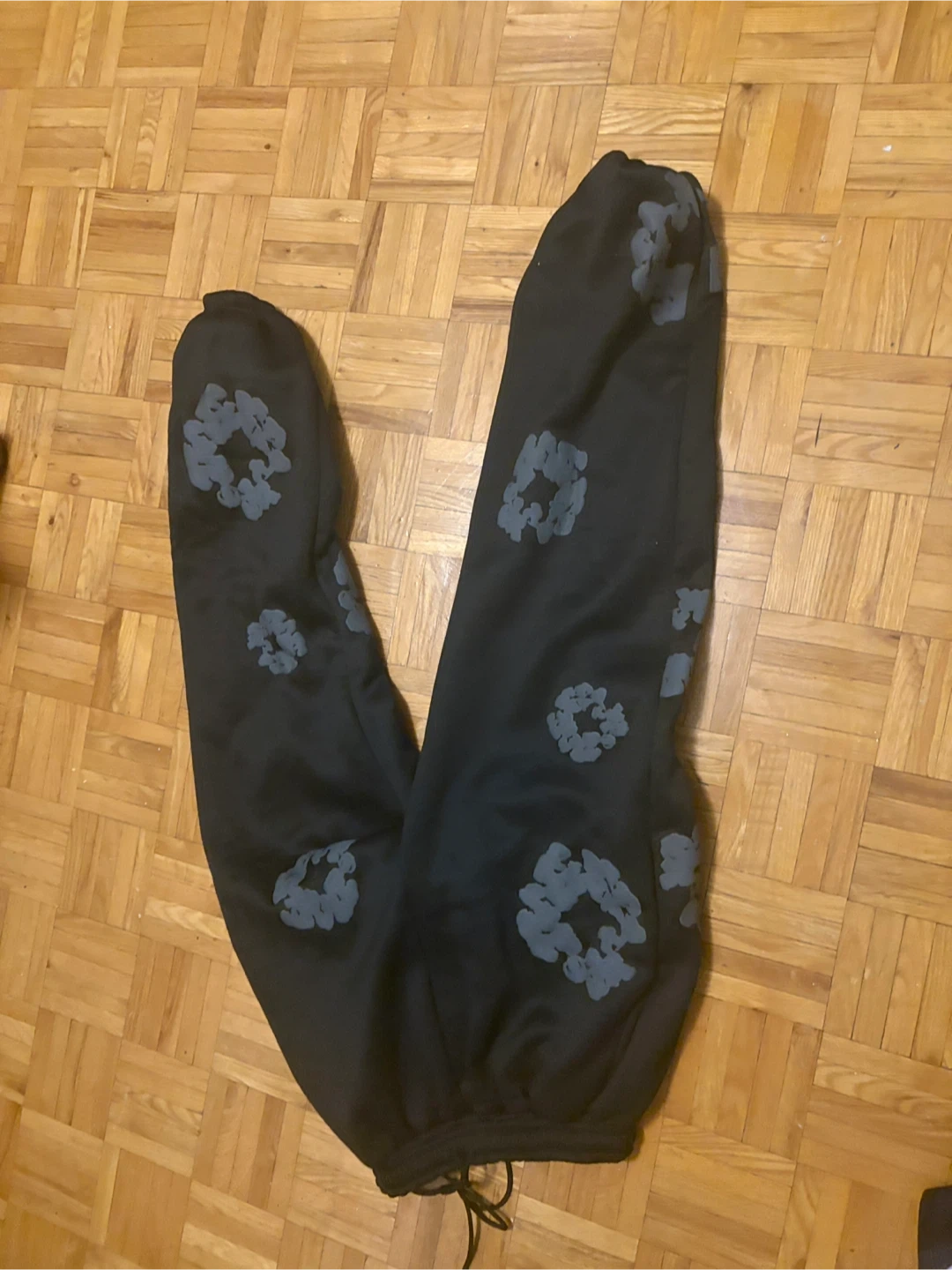 Selling a Denim Tears hoodie and pants set. The set is black with grey floral designs. Perfect for casual wear!