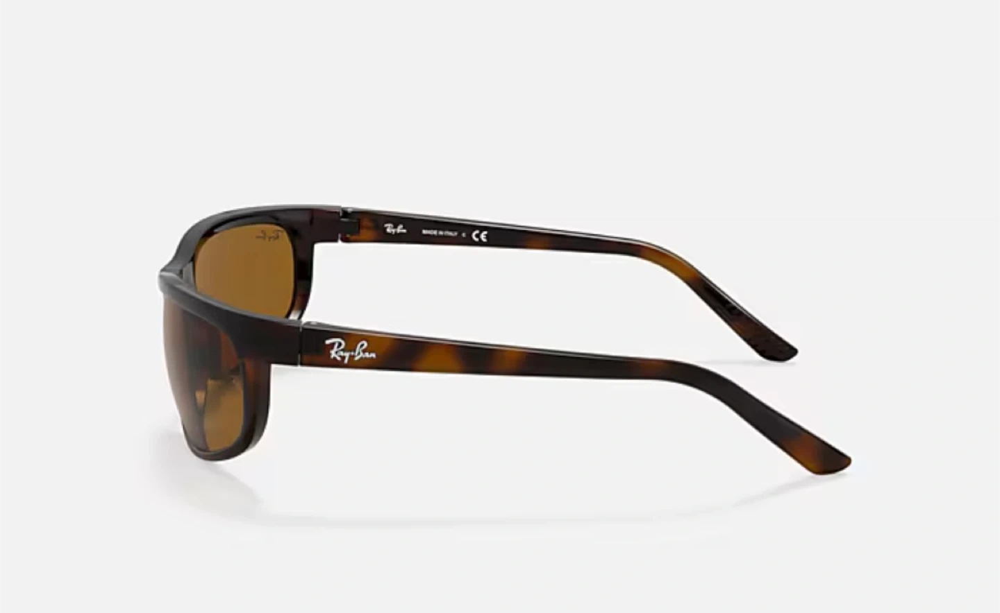 Ray-Ban RB2027 Predator 2 sunglasses take on the traditional Rectangle Sunglasses design with a Ray-Ban signature logo that is displayed on the thin temples. The inside of the Predator temple tips feature a subtle, striped texture treatment. Their wrapped fit creates a sporty look that is both casual and athletic.