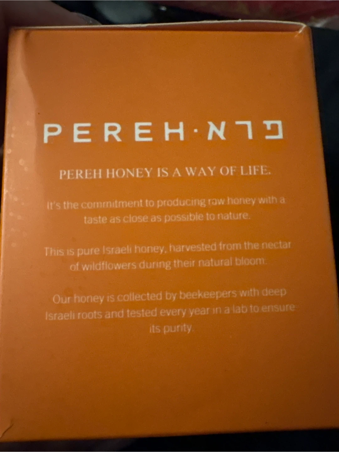 Selling a jar of Pereh Pure Honey, net weight 200 gr. It is produced in Israel and embodies the wonderful versatility of the country. The honey is collected by beekeepers with deep Israeli roots and tested every year in a lab to ensure its purity. It's the commitment to producing raw honey with a taste as close as possible to nature. The honey is a product of nature, so the taste, texture, and color may vary based on the area where the bees gather the nectar. Comes in the original box!