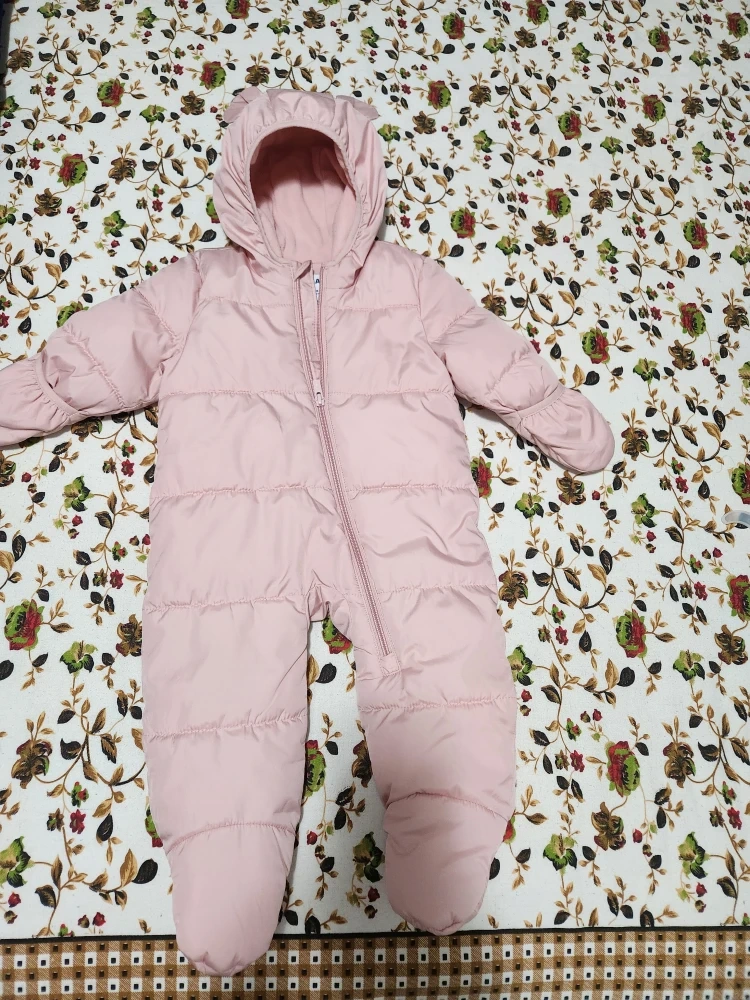 A super cute and cozy Old Navy snowsuit for your little one! This snowsuit is in excellent condition and perfect for keeping your baby warm during those chilly days. It's a size 6-12 months and features a hood to protect your baby's head. The soft pink colour is adorable!