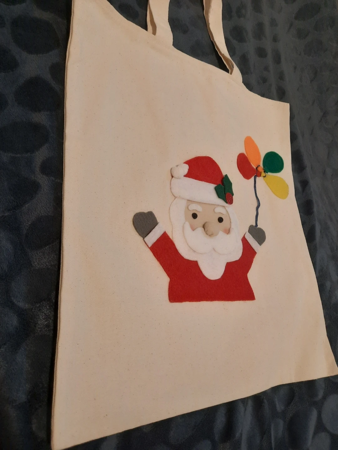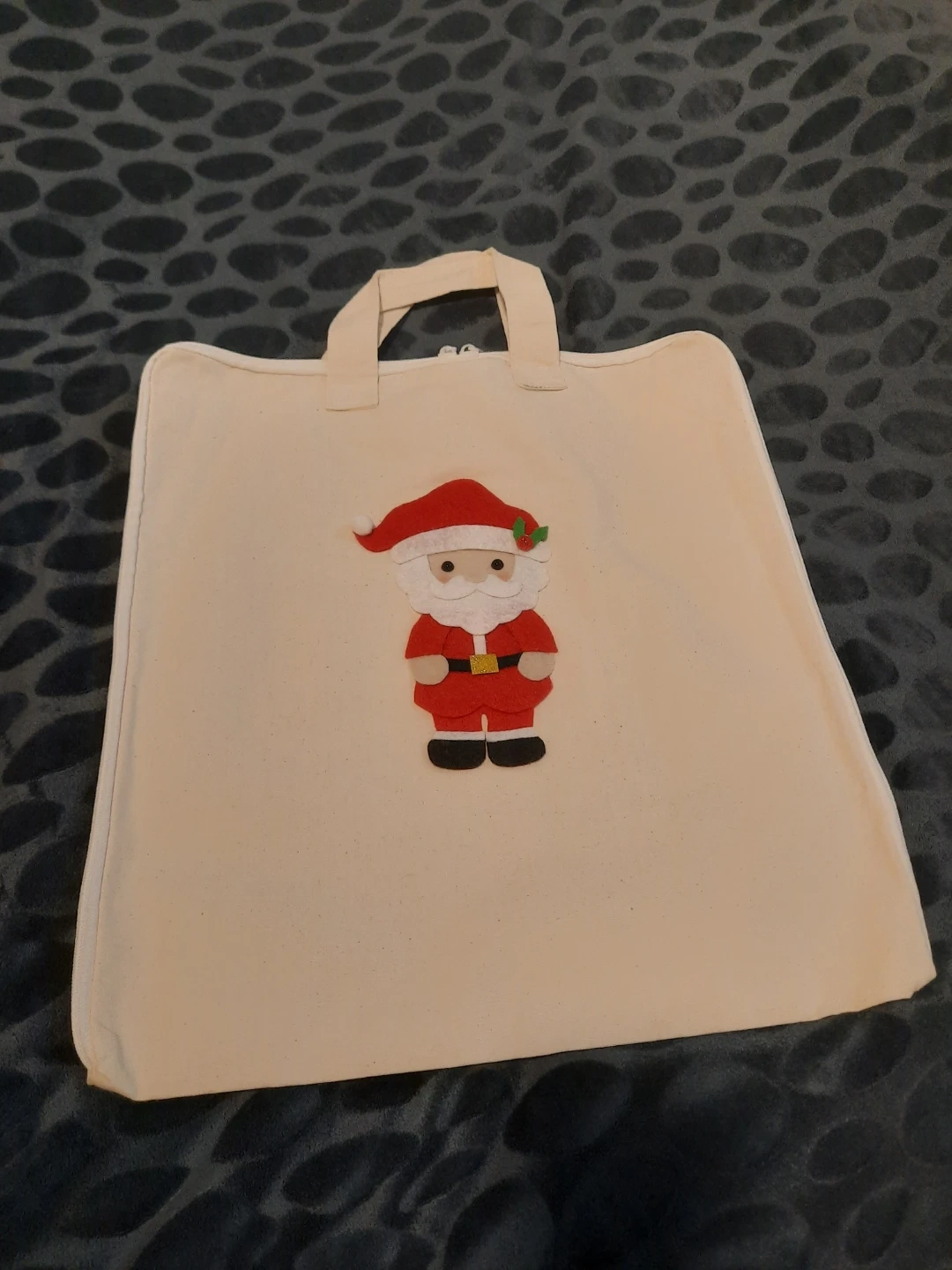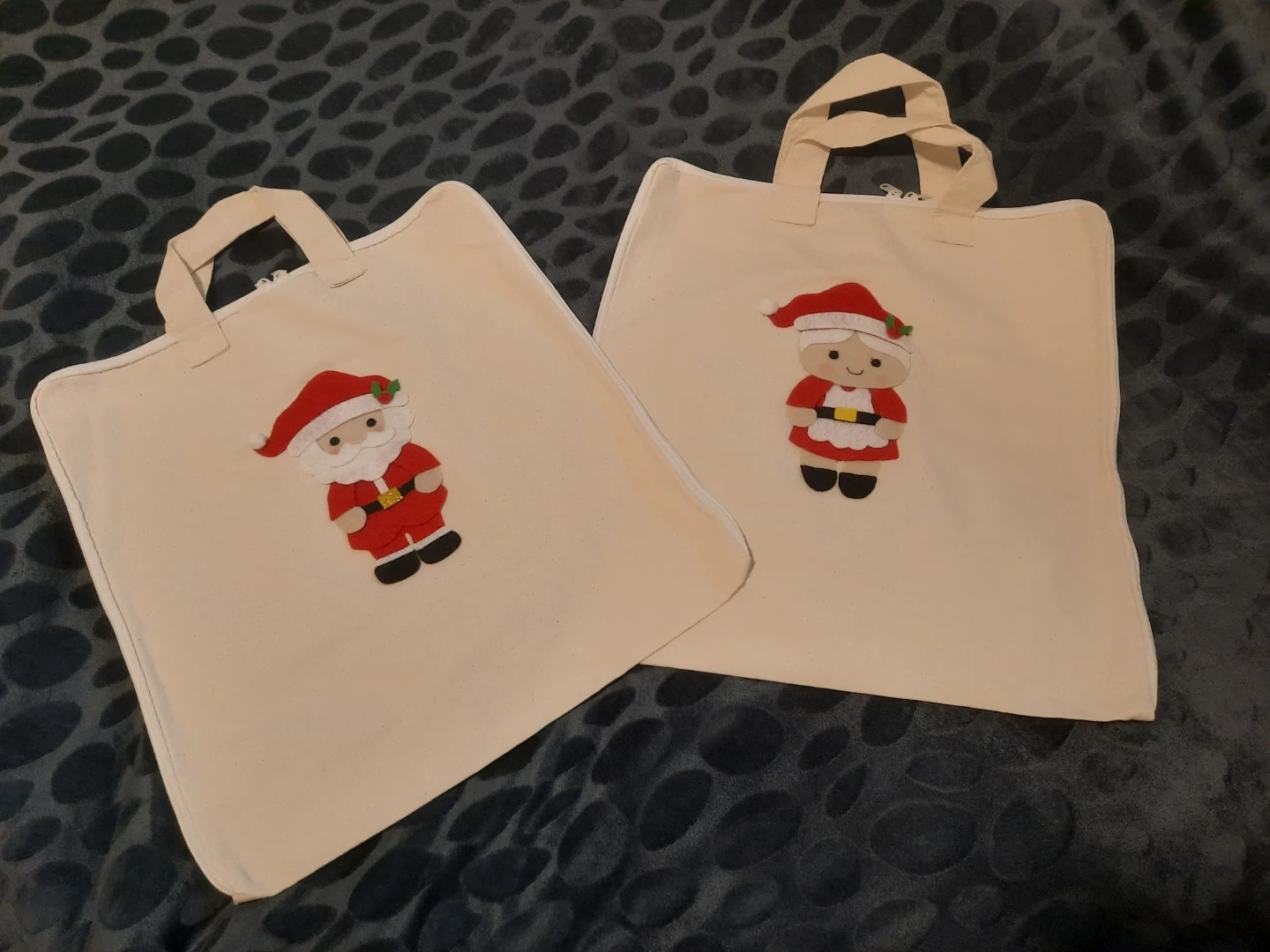 I have a few handmade tote bags featuring Santa Claus and Mrs. Claus.