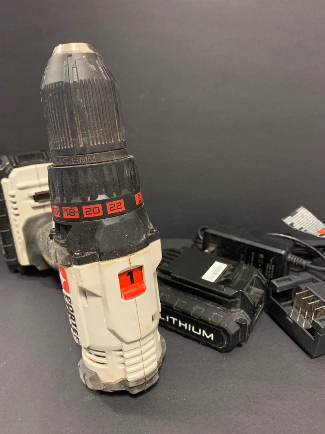 Selling a Porter Cable 20V Lithium drill! It comes with two batteries and a charger, so you'll be ready to tackle any project. It's in good working condition and ready for its next home.