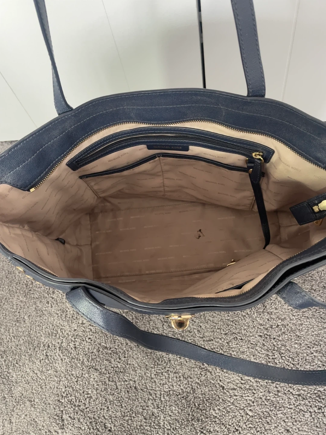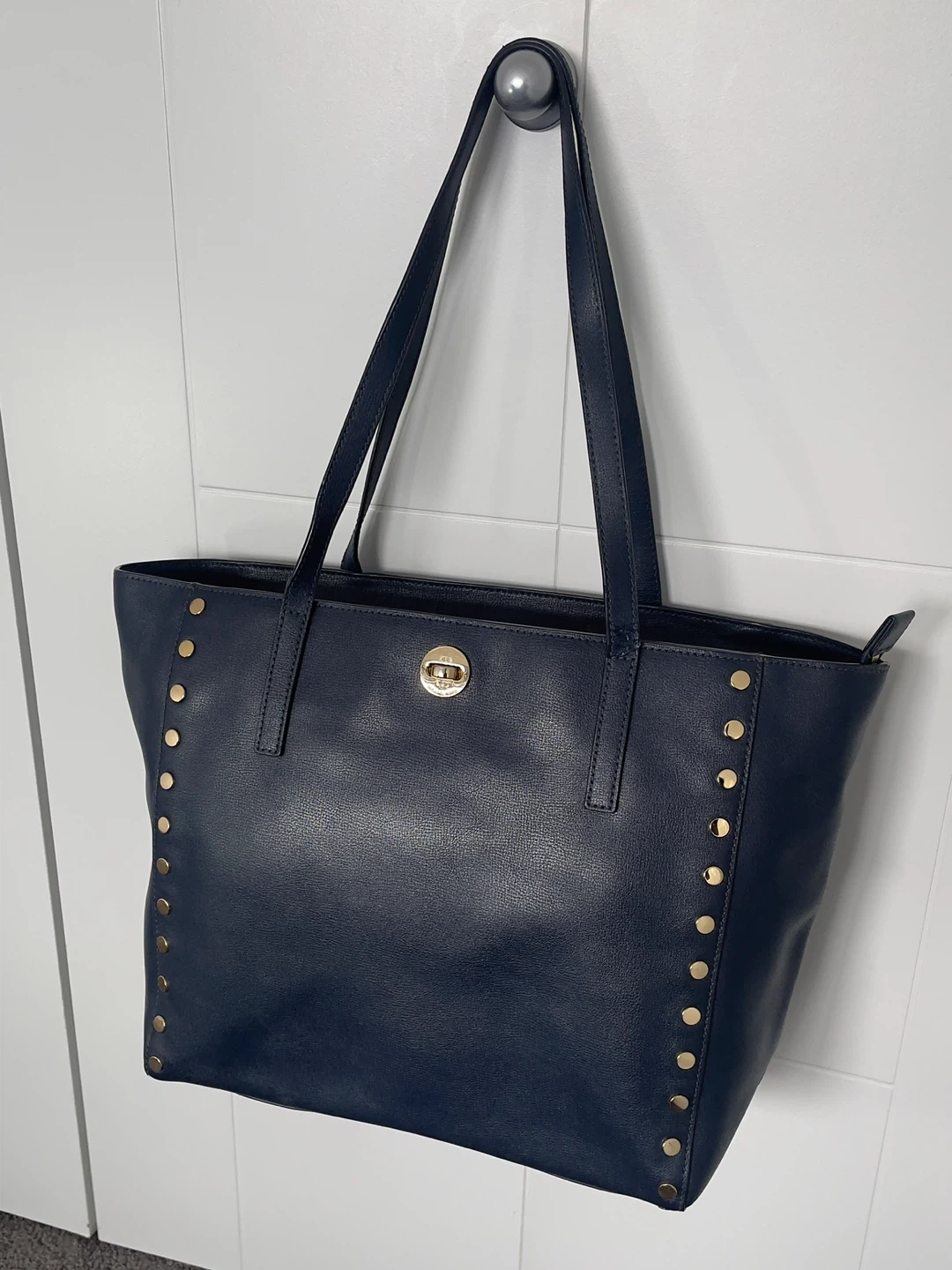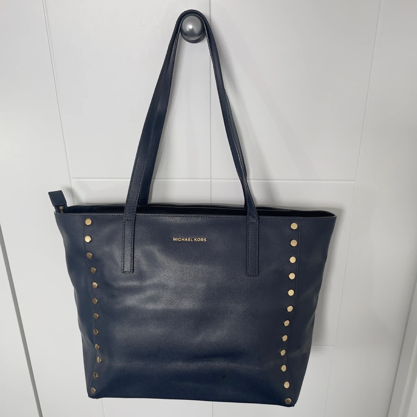 Im Selling A Gorgeous Navy Blue Tote Bag For My Mom. Gold Toned Studs And A Zip Closure, Comes With A Dust Bag. Perfect For Everyday Use. Comes With The Original Dust Bag To Keep It Protected When Stored Away.