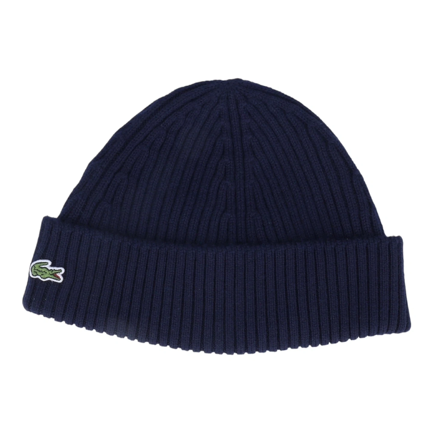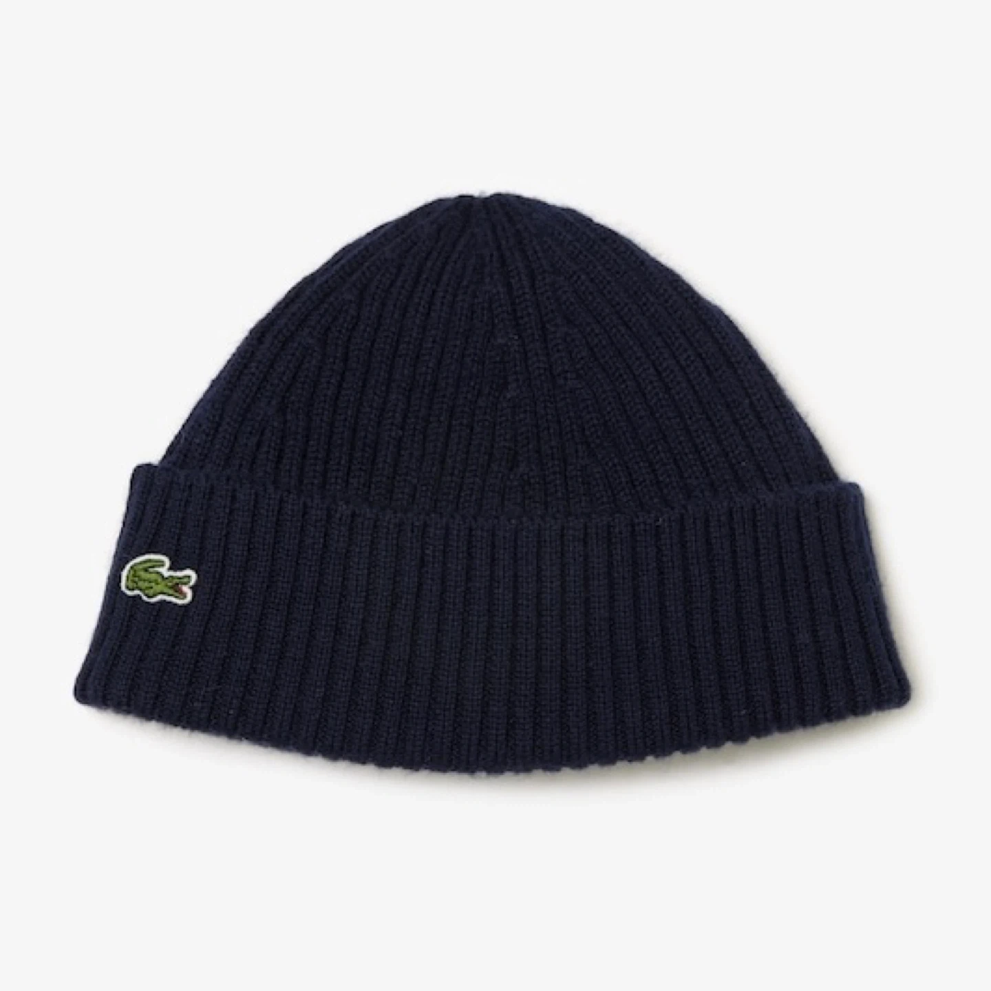 Lacoste Kids Navy Blue Rib Knit Wool Logo Beanie Toque Hat