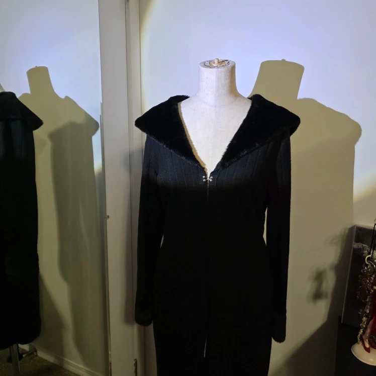 Selling a black cardigan with a fur trim. It's a size SMALL and made of 100% polyester. Perfect for layering! Hook & Eye Closure.