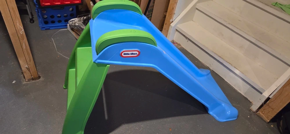 Selling a Little Tikes First Slide in blue and green! It's in great shape and perfect for toddlers who are just learning to climb and slide. The slide is easy to set up and take down, so it's great for indoor or outdoor use. Recommended age range is 18 months to 6 years.