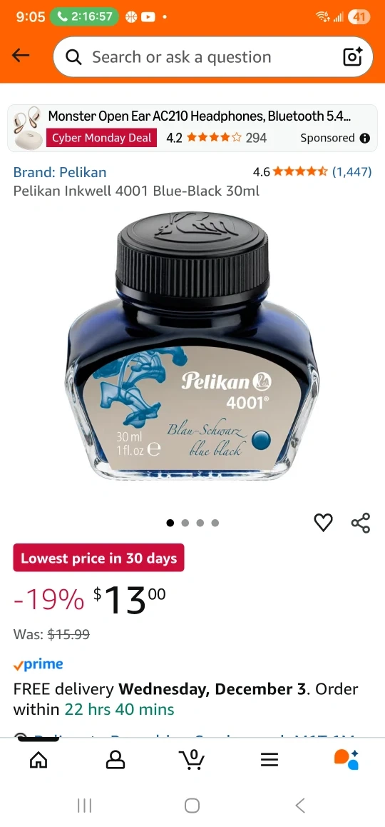 I'm selling Pelikan 4001 fountain pen ink in blue-black! It's a 30ml bottle of Füllhaltertinte, perfect for fountain pens. The ink comes in its original box. Multiple bottles available.