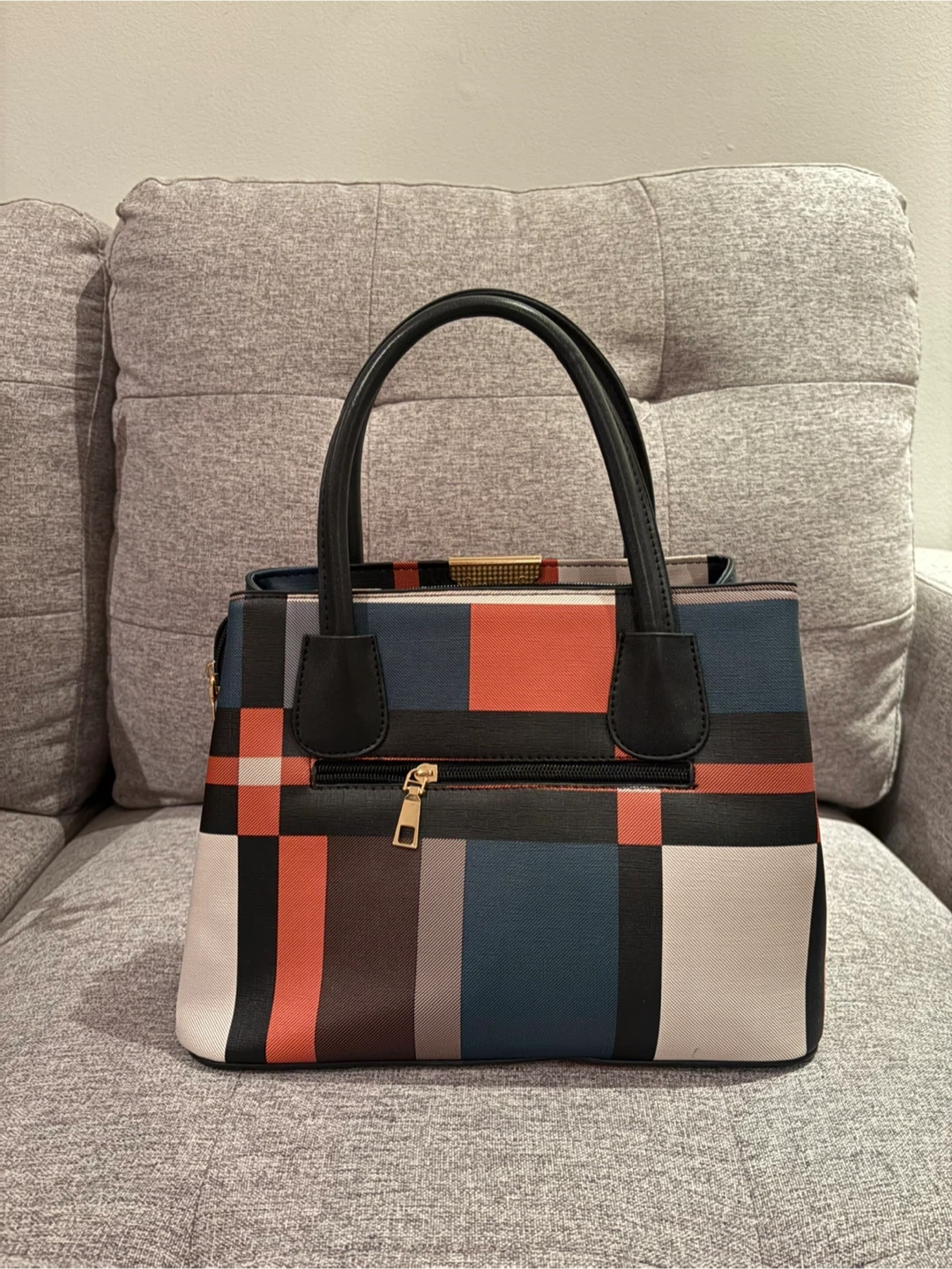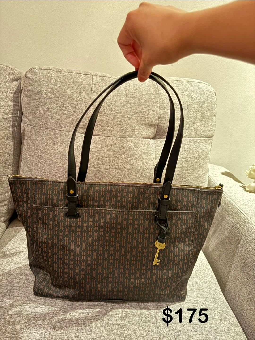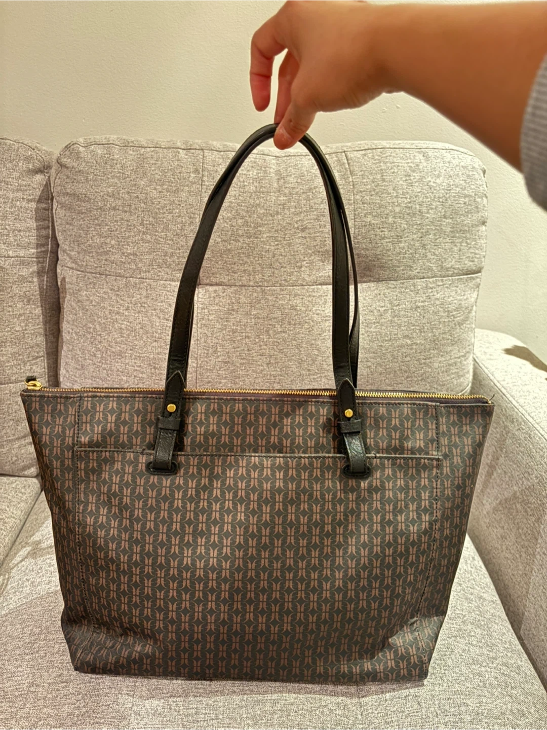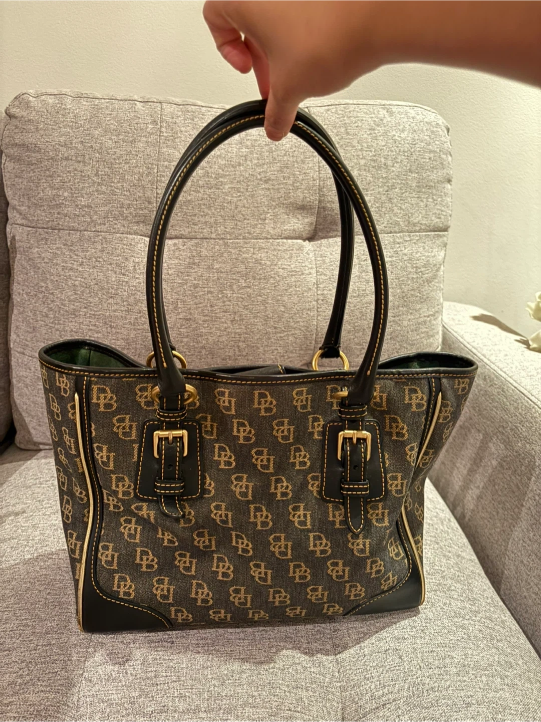 Here's a stylish Dooney & Bourke tote bag! It features a unique pattern and classic design. It's in great condition and ready for a new owner