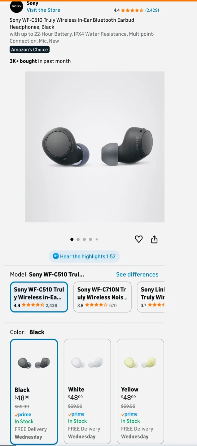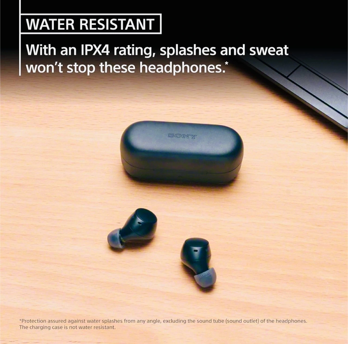 Selling a pair of Sony WF-C500 wireless earbuds in black! They're water resistant with an IPX4 rating, so splashes and sweat won't stop you. These earbuds are lightweight and portable, perfect for on the go