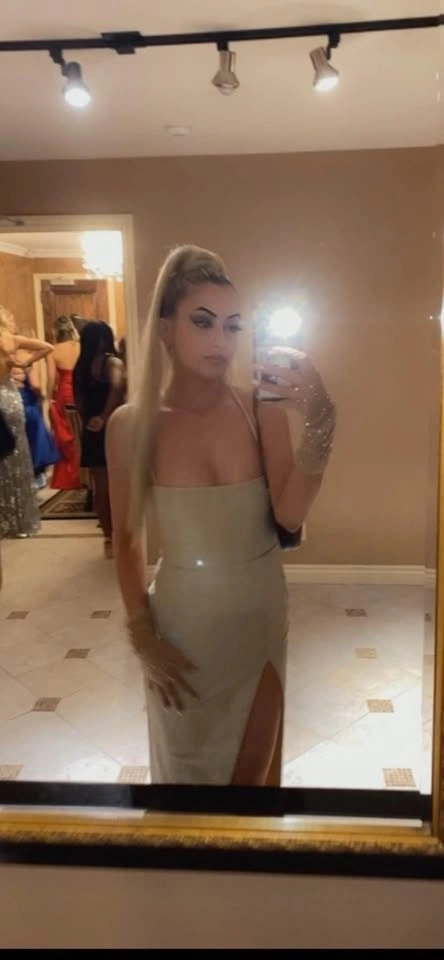 Paid 130 Australia dollar plus 50$ for shipping and handling to Canada. Only worn once on prom night. Size medium but hips have been altered to curve to body more. Very elegant!!